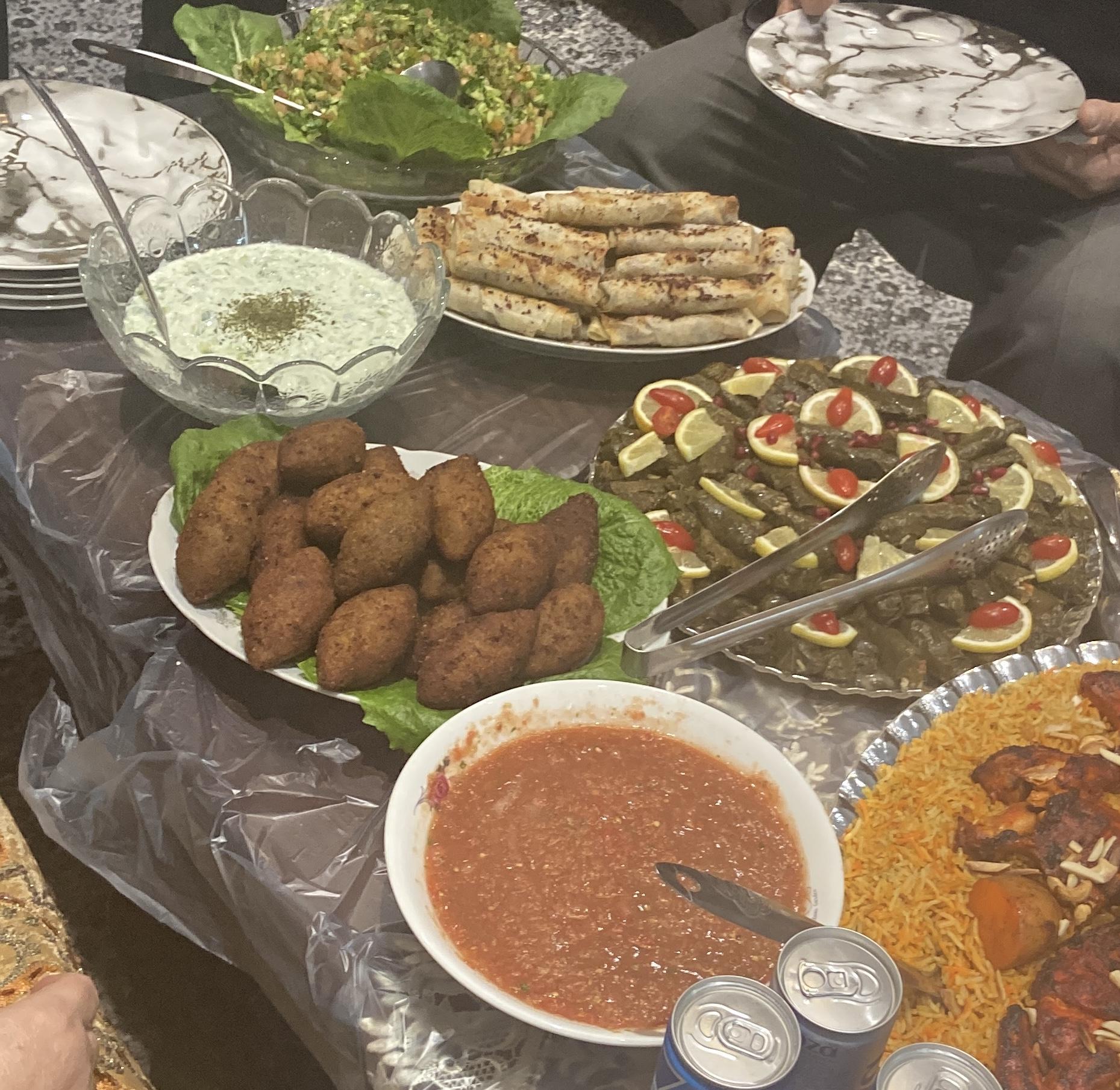 Can't forget dessert! If you're looking to have a warm, sweet drink on a cold night after your meal, definitely go for sahlab. It's made with milk, sugar and a thickening agent like cornstarch. It can be topped with crushed pistachios, cinnamon and shredded coconut. Another common treat across the Levant is knafeh, which is a thin pie-like dessert composed of either golden shredded phyllo or crumbled semolina dough that has a layer of soft cheese underneath and is dressed with a simple syrup containing orange blossom or rose water. It is...incredible.