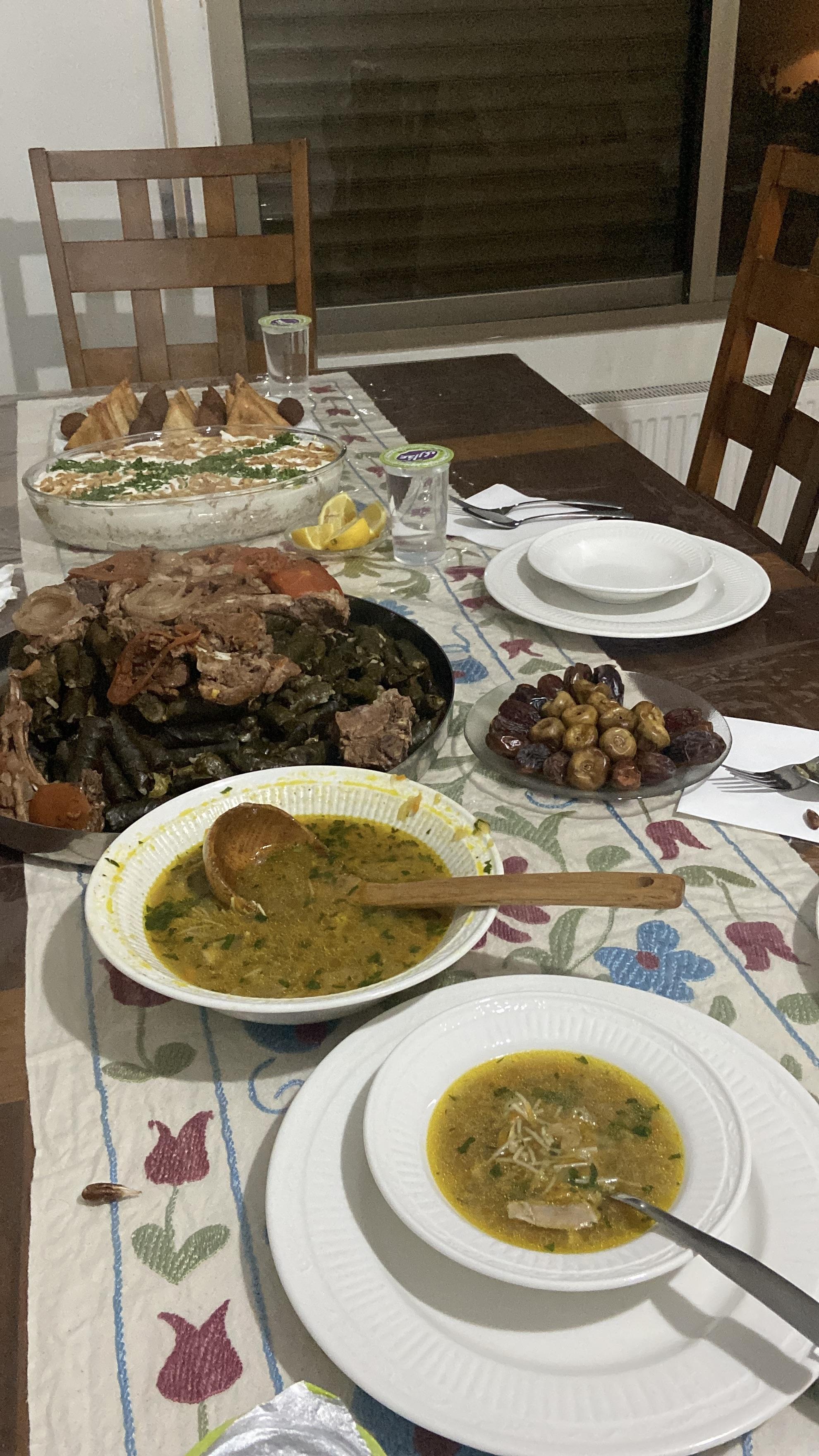 With many meals, you'll find side dishes that range from deep-fried meat or vegetable starters, salads, as well as soups. Some common starters are sambousek, which is a thin triangular pastry dough that can be filled with cheese, potato or beef, and kibbeh, which is a blend of ground bulgur wheat, onions, seasoned meat as well as a mixture of spices and herbs that is shaped into a mini football-shaped ball and deep fried. Common salads you might find at a Jordanian dinner table include a a crunchy fattoush with pita chips and a pomegranate molasses dressing, an herb-forward tabbouleh, or a vibrant yogurt-based cucumber mix with mint, garlic and lemon juice. Last but not least, you might come across a variety of hearty shorbat or soups, such as molokhiyeh, which is made with jute plant and has a silky texture when made into a stew, and others that are made from lentils as well as mixed vegetables.