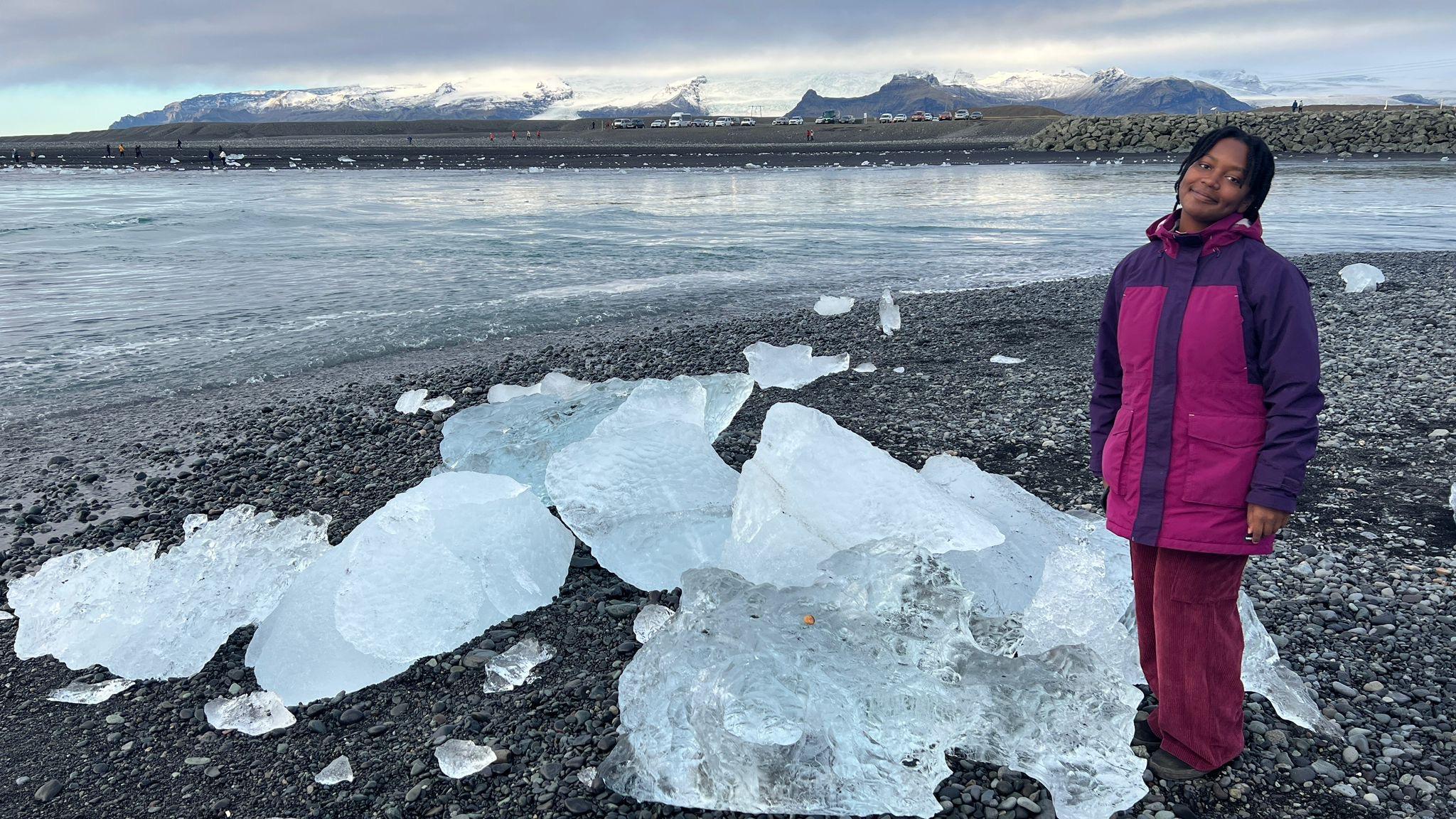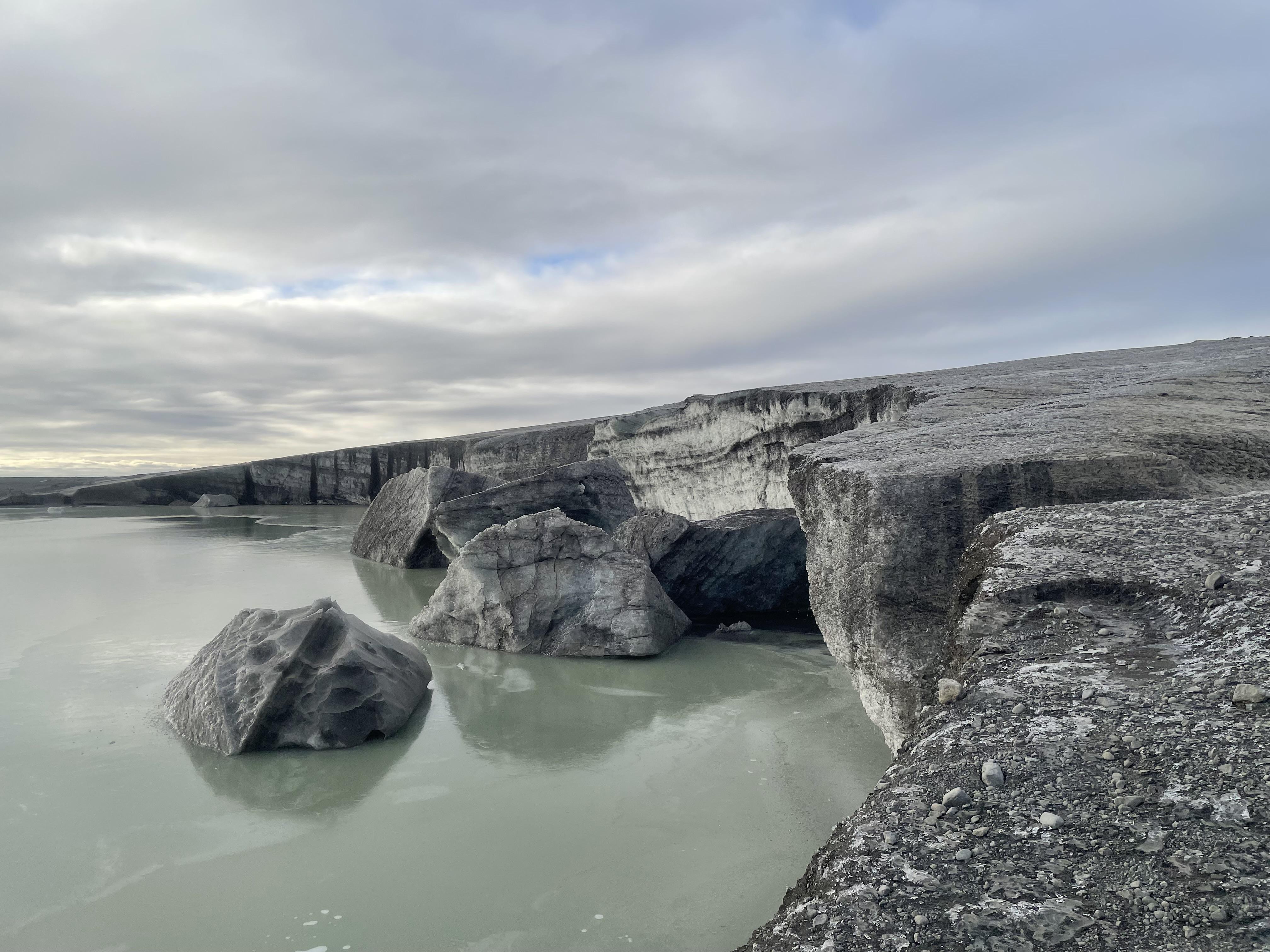 As a part of my study abroad program, my classmates and I went on a glacier tour to the largest glacier in Iceland Vatnajökull. I learned so many things about Vatnajökull Glacier from our amazing tour guides. The tour included traveling to multiple ice caves and seeing firsthand where the glacier is breaking and melting away. Our tour guides let us know that one of the ice caves that we were supposed to visit was unaccessible because of the rapid melting of the ice. Our guides also told us that they have to check their glacier tour routes daily with a drone because of how rapidly the ice changes. Depending on what changes have occurred since their last visit to a specific site on the glacier, they assess if it is safe to go back or not. For us, it turned out that only one out of our many stops on the glacier had become unsafe to visit. However, the alarming part of this story is that our tour guides were referring to a very short time scale. Our guides said they could be at a very cool ice cave one day and the next day it would not be accessible anymore. In other words, the ice is changing quickly, even on a day to day scale. When we visited the location where the glacier was breaking off and falling into the glacier lake, the tour guides told us that one of huge piece of the glacier that was sitting in the lake had only recently fallen off. I felt it hard to comprehend how fast the glacier iwas changing when standing in front of one for the first time. Everything about the glacier seemed stagnant, yet there were glacier rivers flowing beneath me without me knowing it.