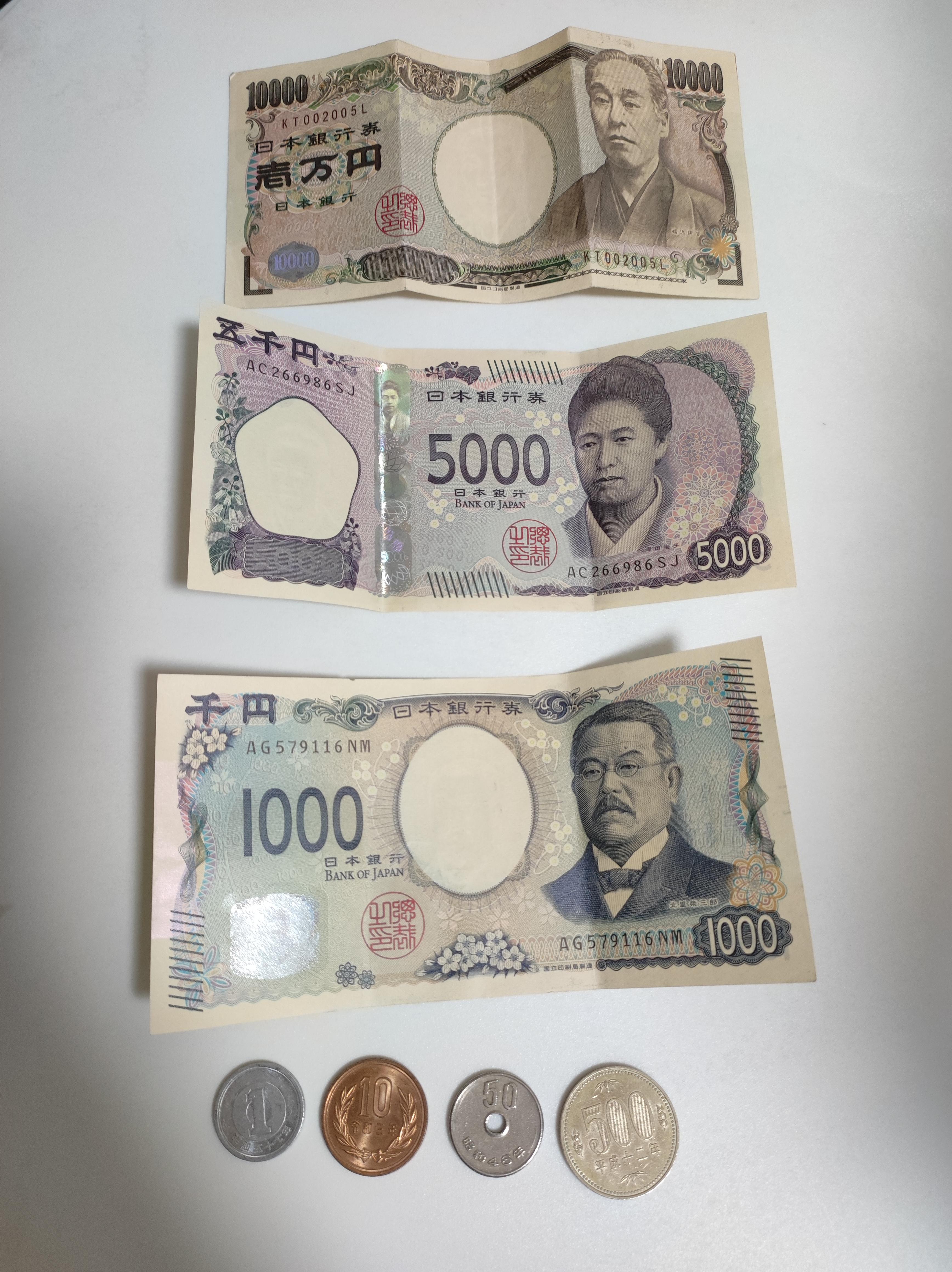 Japanese yen (¥) is used here. For paper bills, there are 1,000, 2,000 (rare), 5,000, and 10,000 yen notes. For coins, there are 1, 5, 10, 50, 100, and 500 yen. Nowadays, cashless payment like credit cards or mobile QR-code payments are becoming more common.