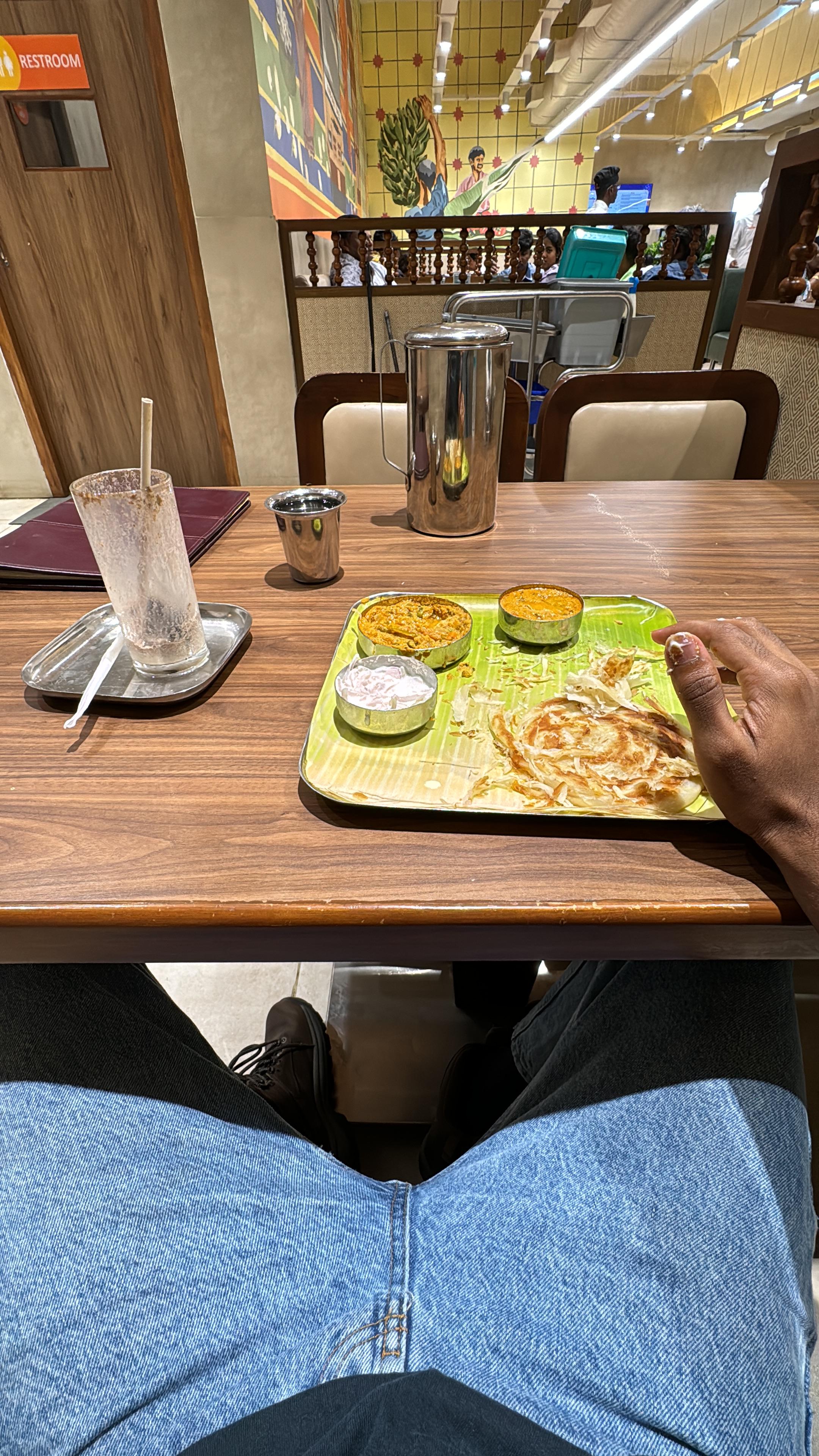 I also noticed how different places changed the way food was eaten. On airplanes and trains, meals were packed neatly into trays or containers. At restaurants, food was served on metal plates or banana leaves and shared across the table. At home or with friends, meals felt relaxed, often lasting longer than expected. These different settings showed me how food adapts to daily life in India.