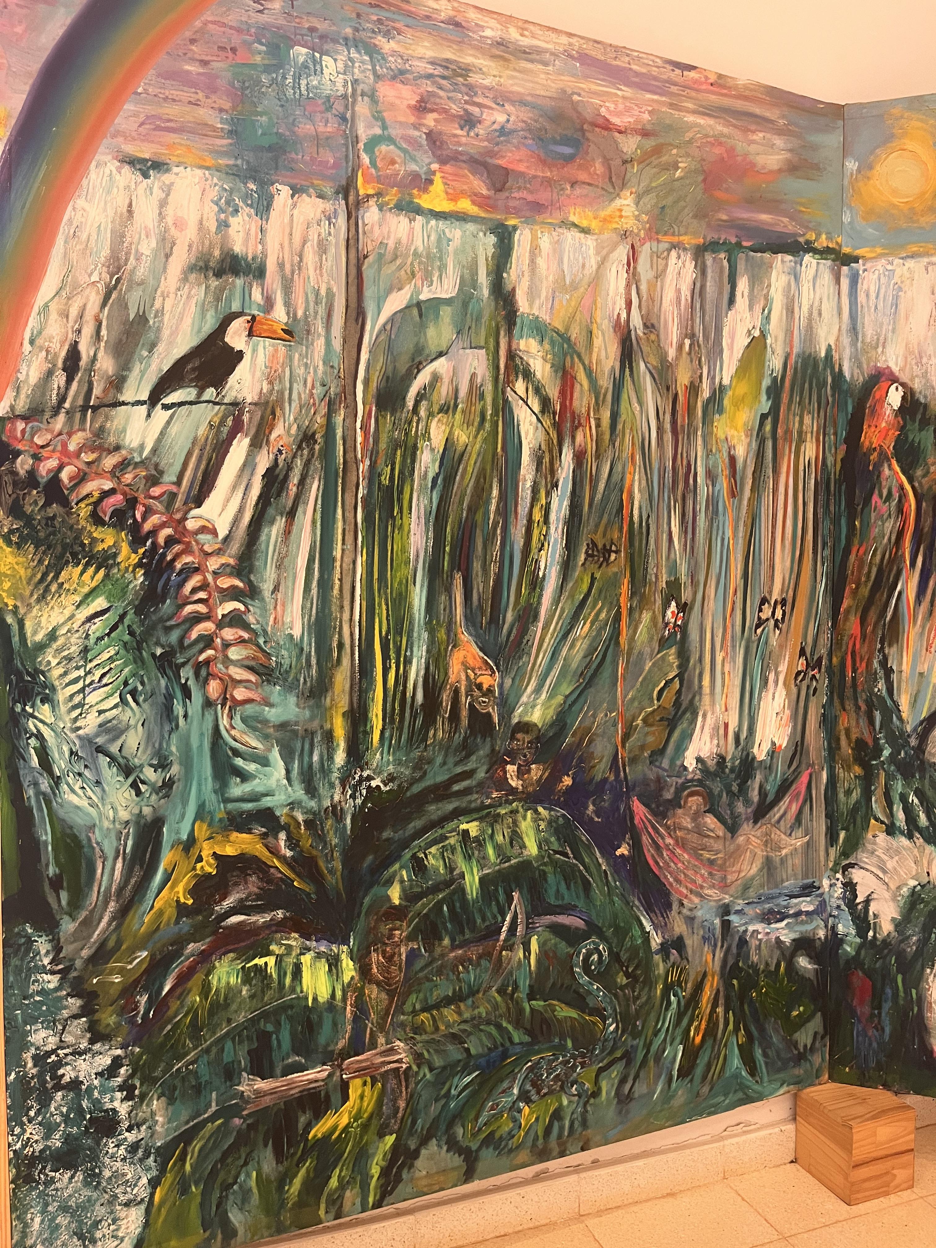 Mi familia tiene una casa de material y una típica de tierra. Viven cerca del río Paraná. Mucho está cambiando en la comunidad ahora. Pero antes de esta época, la guía espiritual de la comunidad tenía poder total. Él dijo que solo podíamos usar tierra para hacer las casas, porque es tradicional usar tierra. Pero ahora hay más modernismo y por eso mi familia tiene también una casa de material. “De material” es como una casa de madera o concreto, en contraste con una casa de tierra