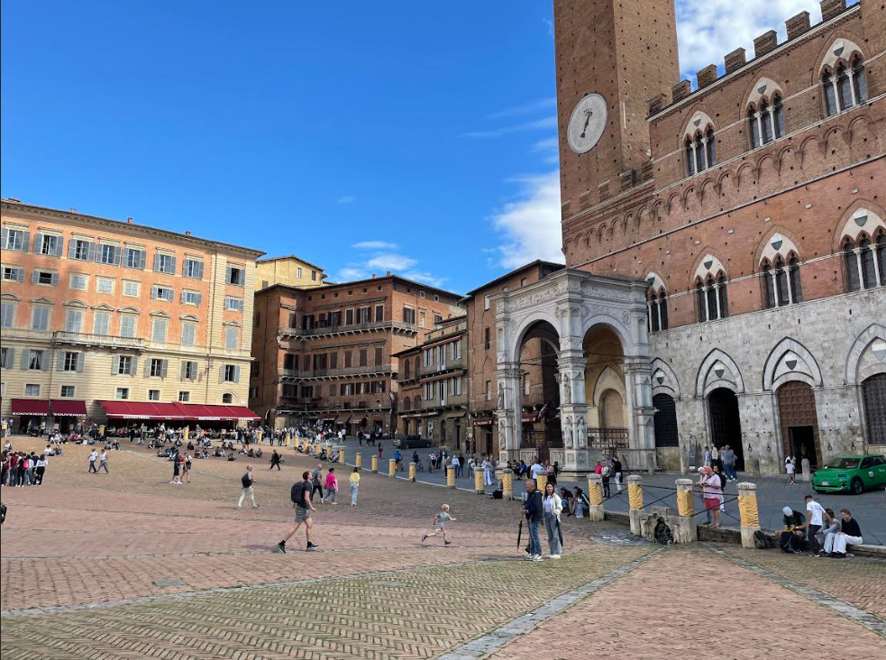 I learned about the Palio race in Siena. Every July and August in Siena ten of the seventeen neighbohroods here particpate in a horse race in the city center — Palazzo del Campo. Every nighborhood has an animal that they represent, such as the She-Wolf, the Porcupine, the Caterpillar, and others. All the members of the neighborhood come and support their horse and jockey representative, filling the Palazzo with people all cheering for their respective teams. The winning neighborhood gets awarded a painting dedicated the the Palio race and bragging rights for the rest of the year against the losing neighborhoods. Once there is a winner, the celebration does not end there. The winning team celebrates all year! Throughout the year they throw feasts and carry out parades to remind the other neighborhoods who won.