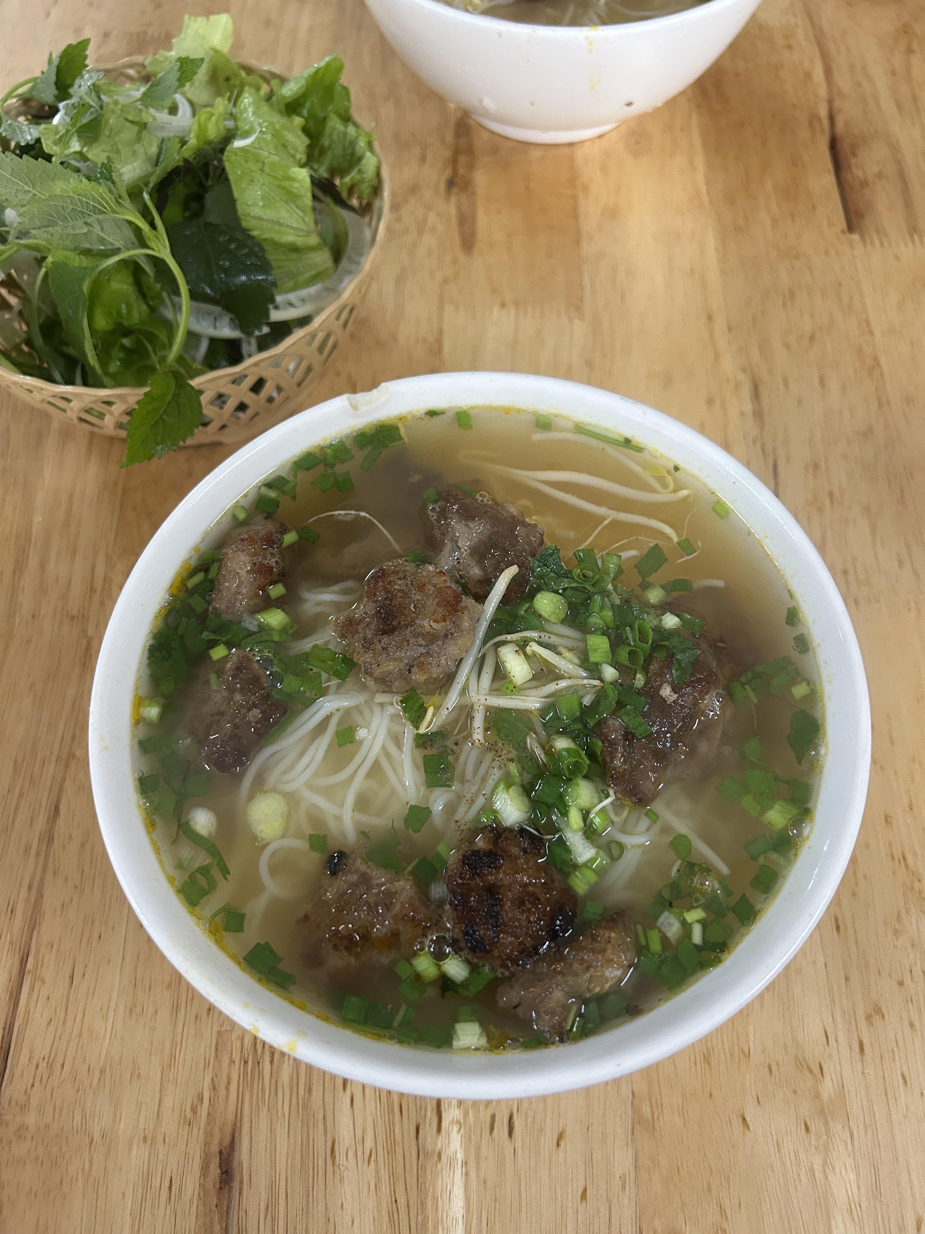 The best meal I ate this week was bún chả. Bún chả is a soup dish with noodles, pork and other vegetables.