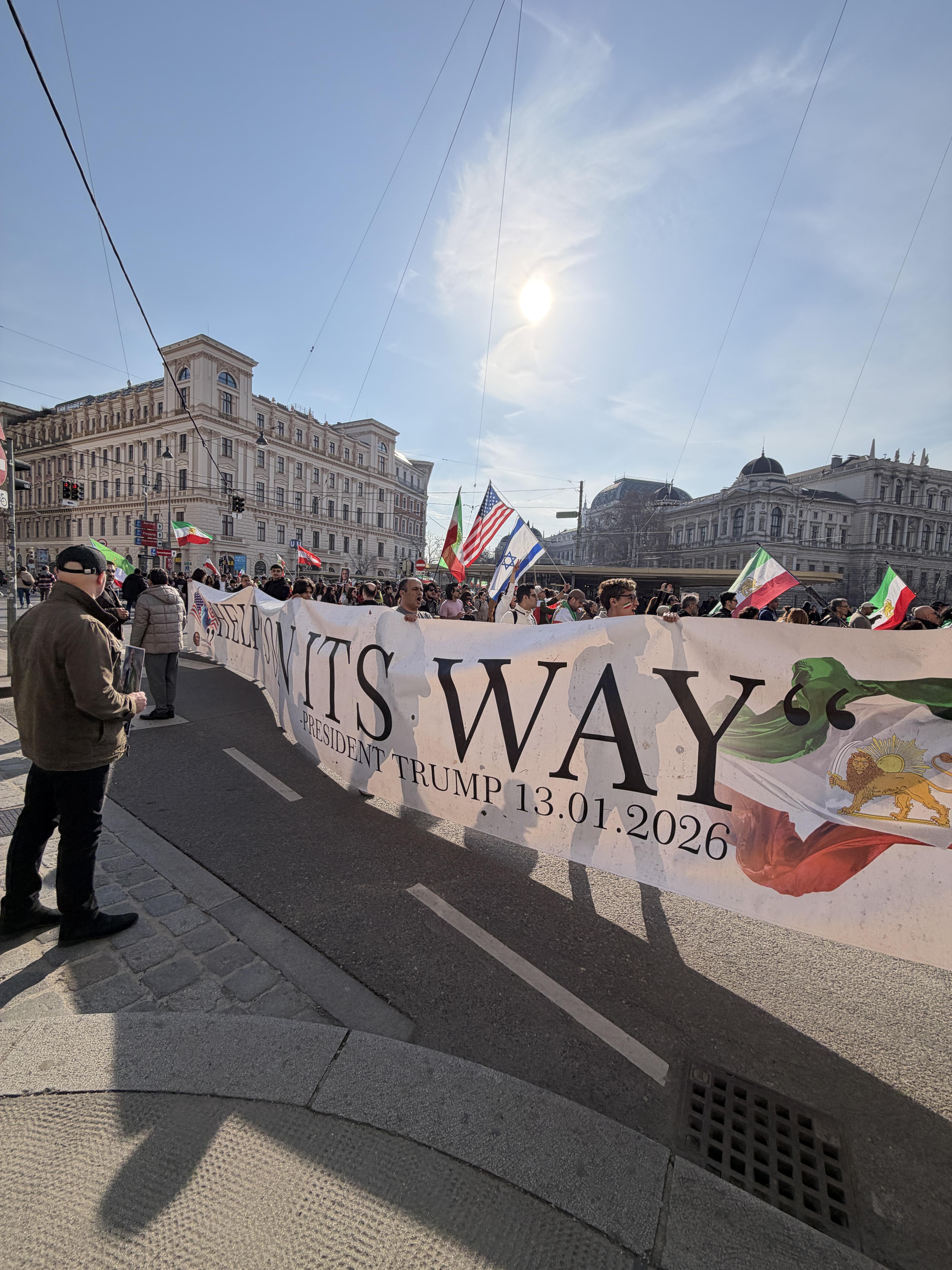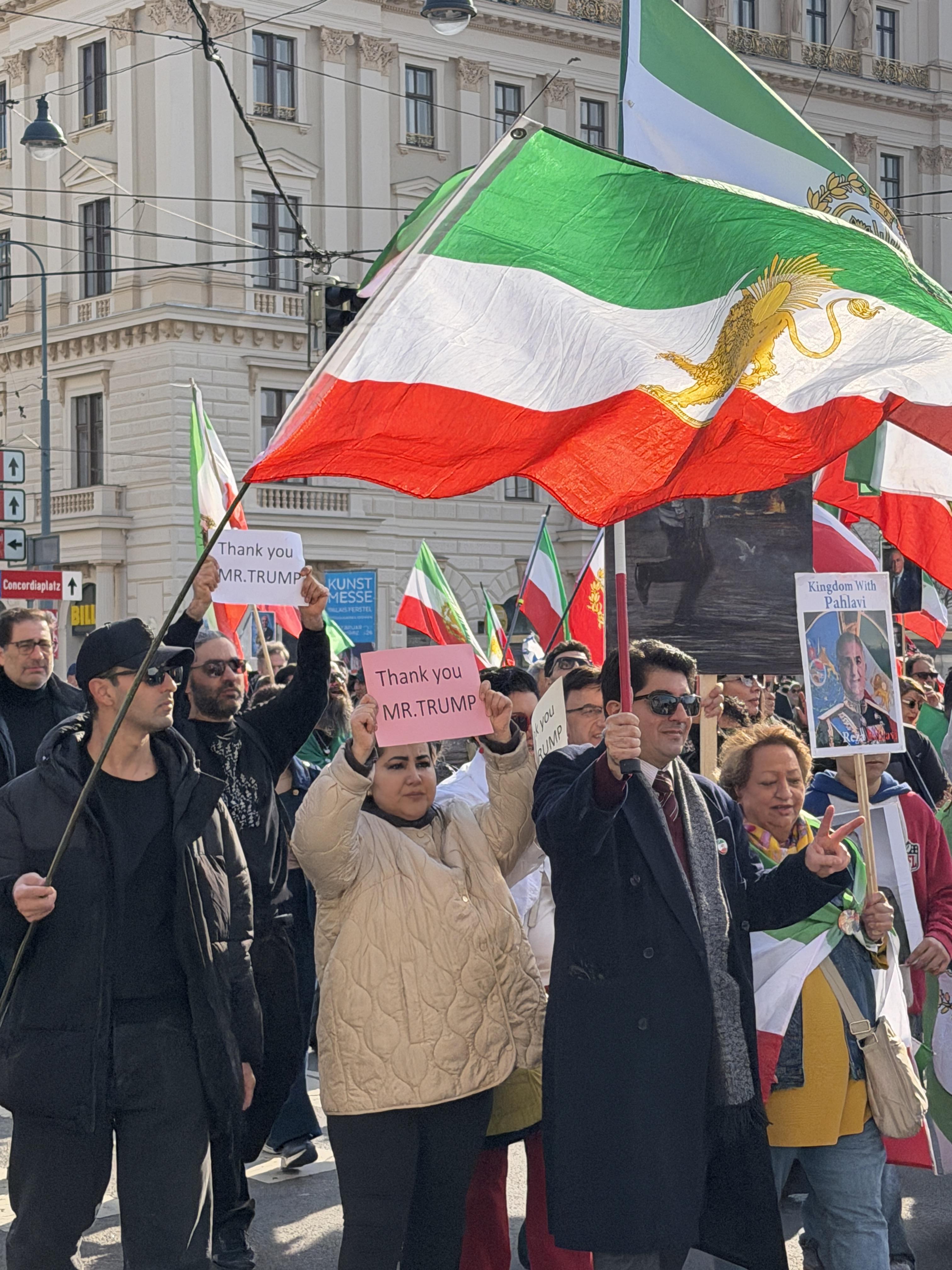 When the crowd reached my street, I noticed dozens of Iranian flags, along with a few Israeli and American flags. As the march moved closer, I could finally read some of the signs. A few said, “Thank You, Mr. Trump” and “Thank you with gratitude America, with respect Israel, our leader, our hope, Reza Pahlavi.” This caught me completely off guard. I had assumed I was watching a protest, but instead it seemed like a celebration, or demonstration of support.
