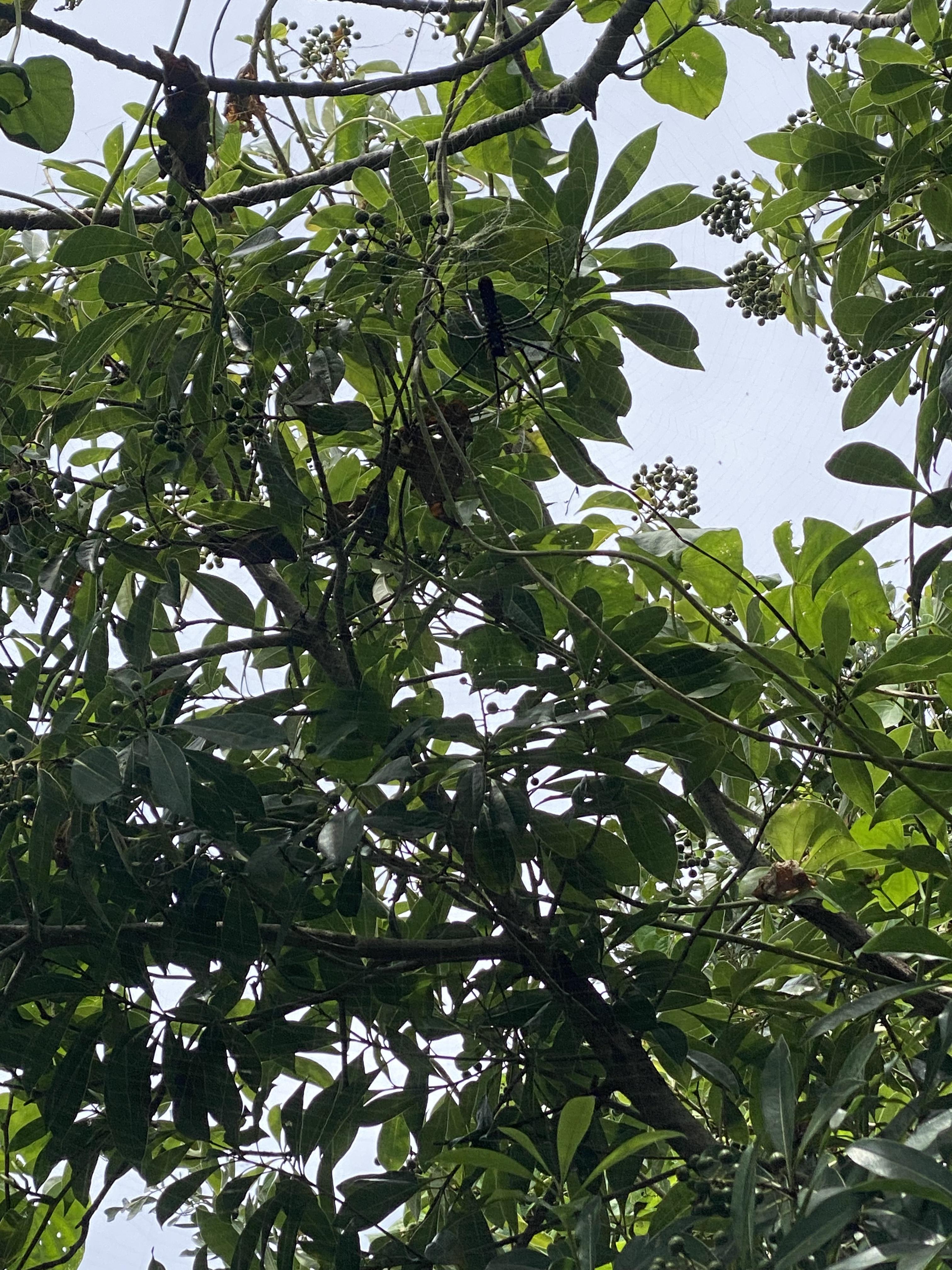 The spiders, here, will often build webs that span the width of the trail, so you have to watch where you’re walking or else you’ll get a face full of spider-web! Can you spot the spider in the picture on the right? Hint: It’s in the upper half of the photo...