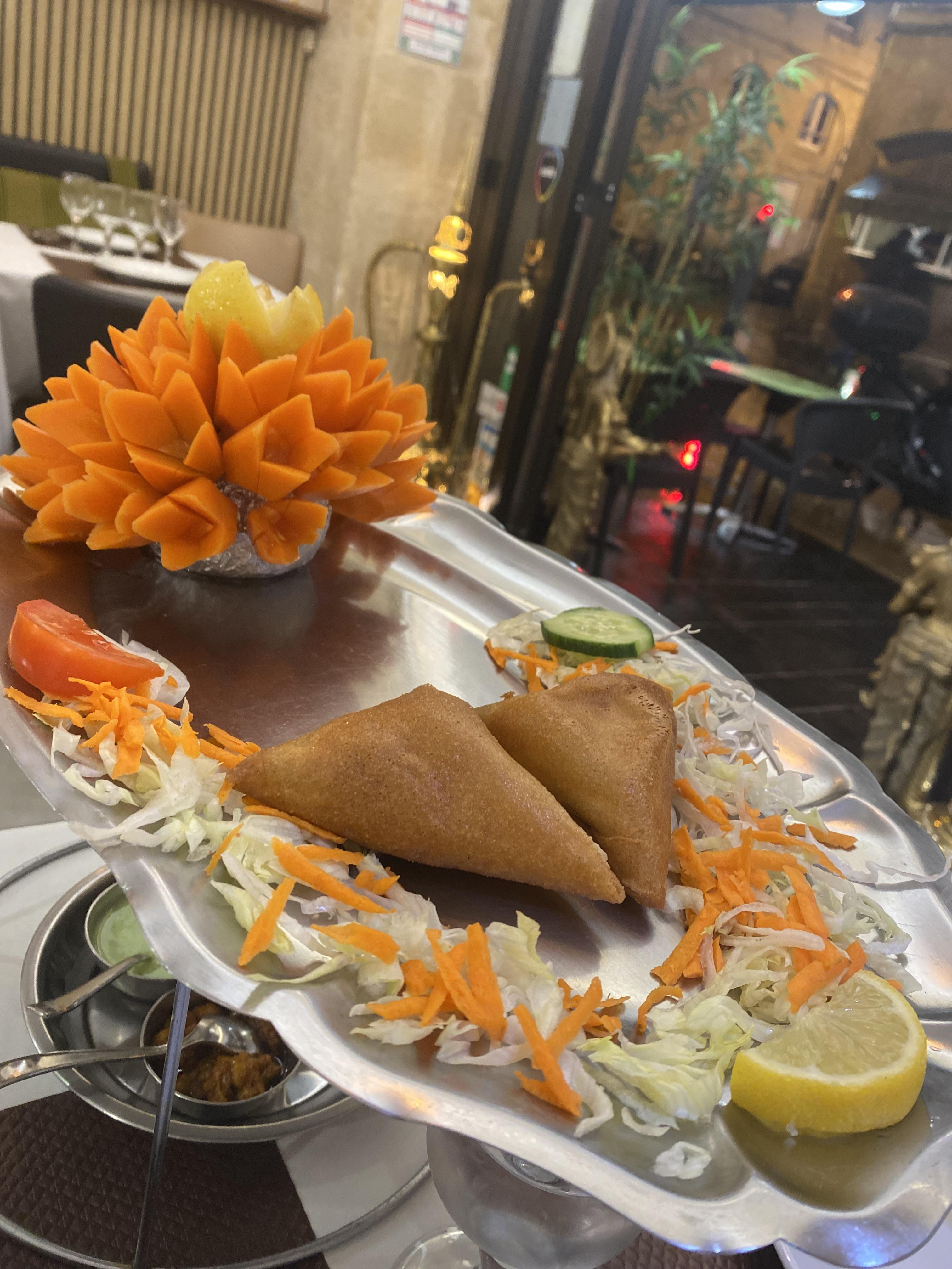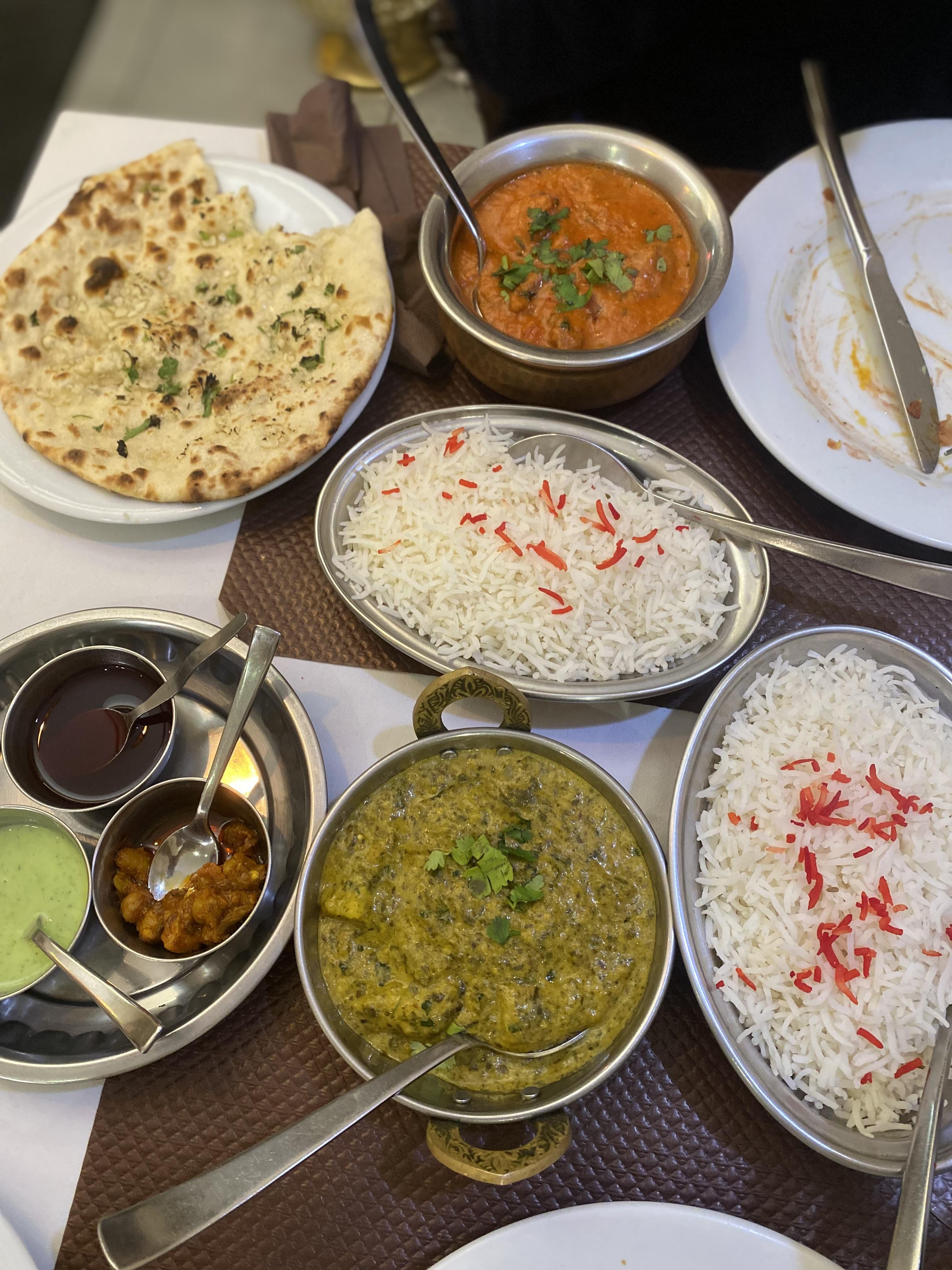 This week I went to an Indian restaurant called Royal Indien with a friend of mine named Angelina. At the restaurant I shared some samosas with my friend, and had garlic naan with saag aloo. Saag aloo is a dish made from spinach (saag) and potatoes (aloo) cooked together with a variety of spices. It's very flavorful, sometimes spicy, and absolutely delicious. I've also made a variety of dishes at home this week such as lots of falafel wraps, a lentil soup my mom and I call magic potion soup as I was sick, and polenta with mushrooms.