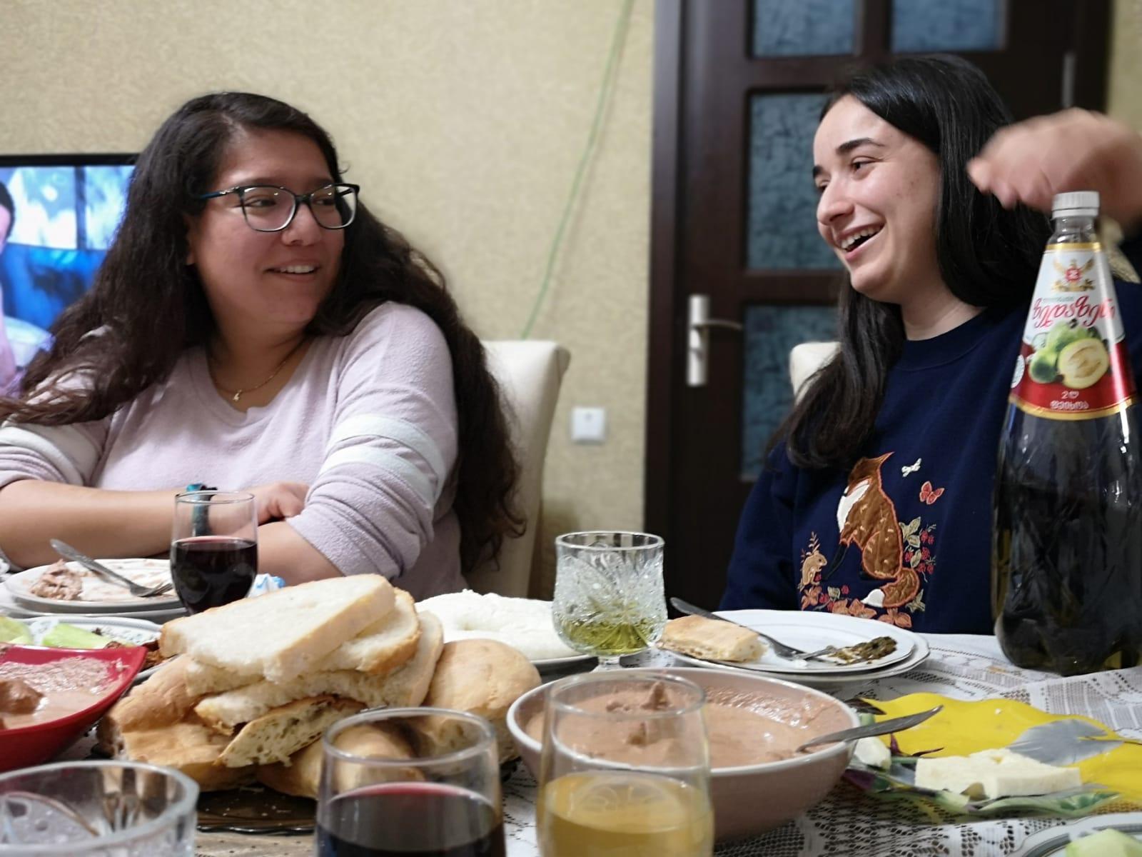 I tried my first genuine Georgian meal in Zugdidi with my friend and her family. The table was filled with a variety of dishes. Even after I had already insisted I was full, they kept filling up my plate to make sure I wouldn't go hungry. Enjoying a meal with the locals gives a person insight into the families that make up this beautiful country.
