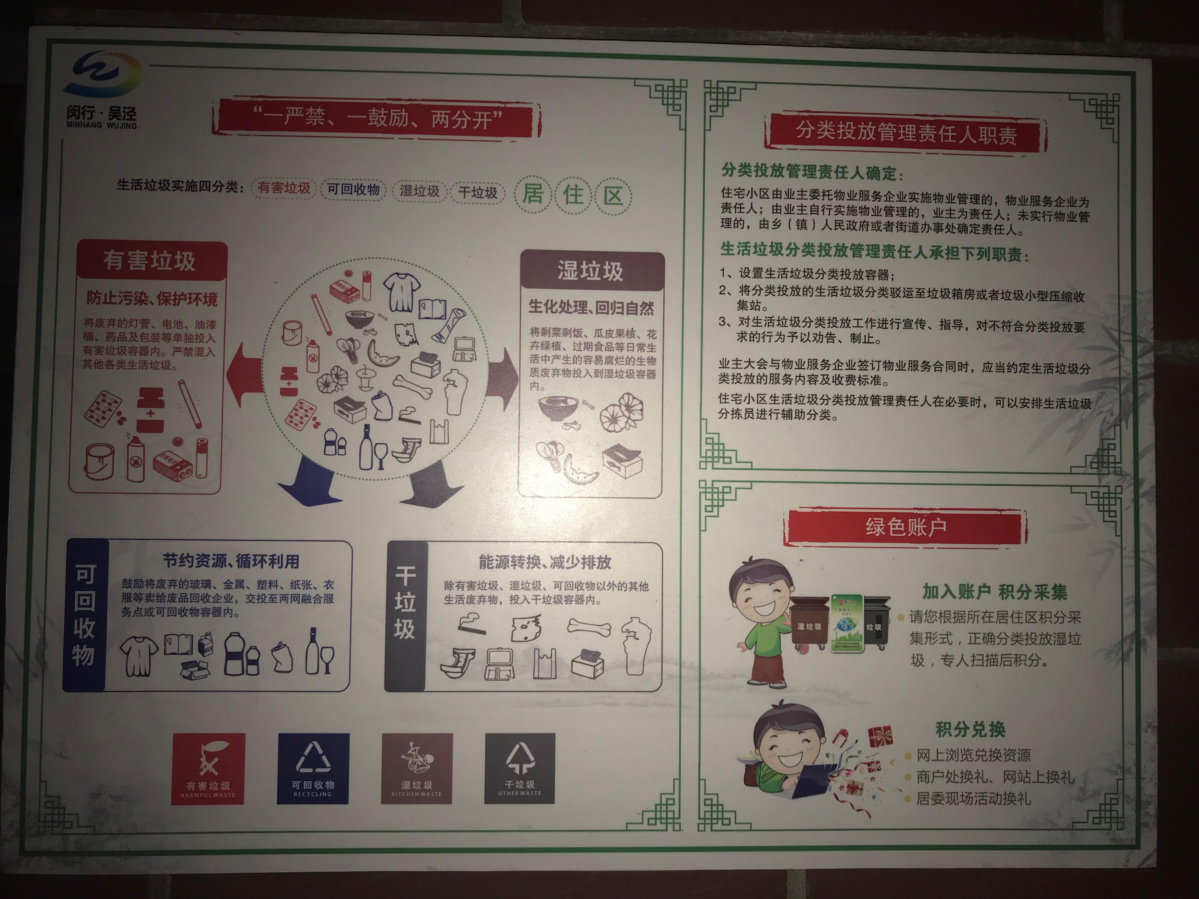 When millions of people are throwing away recyclables, waste management workers are unable to sort all the trash on time, and tons of waste go into garbage dumps, polluting the land and water nearby. When soil and water are contaminated with garbage, people get sick and their quality of life decreases. If people sort their recycling and trash properly, much less waste goes into the garbage dump and the earth becomes less polluted. Every community in Shanghai benefits from sorting its waste properly.