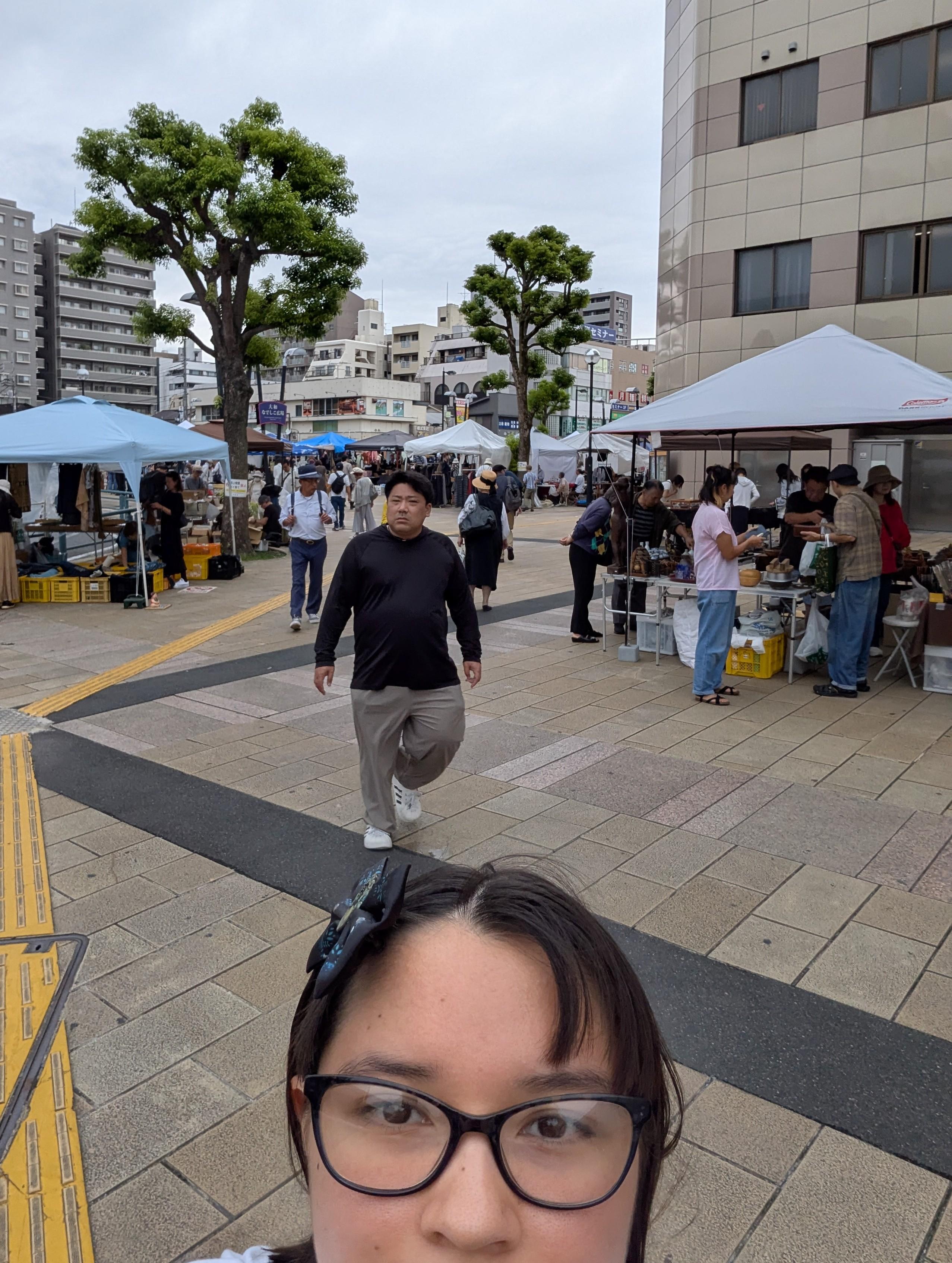 Our story begins on Saturday, September 20th. My grandmother likes to go to flea markets, and there happened to be one in Yamato. Yamato is just a station over from where my grandparents live, so it was no problem traveling there. When we arrived, we were greeted by miles of tents! The Yamato flea market was set up on either side of Yamato station. You could pick either direction, left or right, out of Yamato station, and you'd be in the flea market. We started out going right, and were immediately bombarded with cloth stalls. People were selling fabric, usually with designs on them. They were intended for kimonos, but the offcuts can be made into other things by a seamstress, such as purses, bags and other accessories. My grandmother likes to sew, so she's always interested in checking out the fabrics.