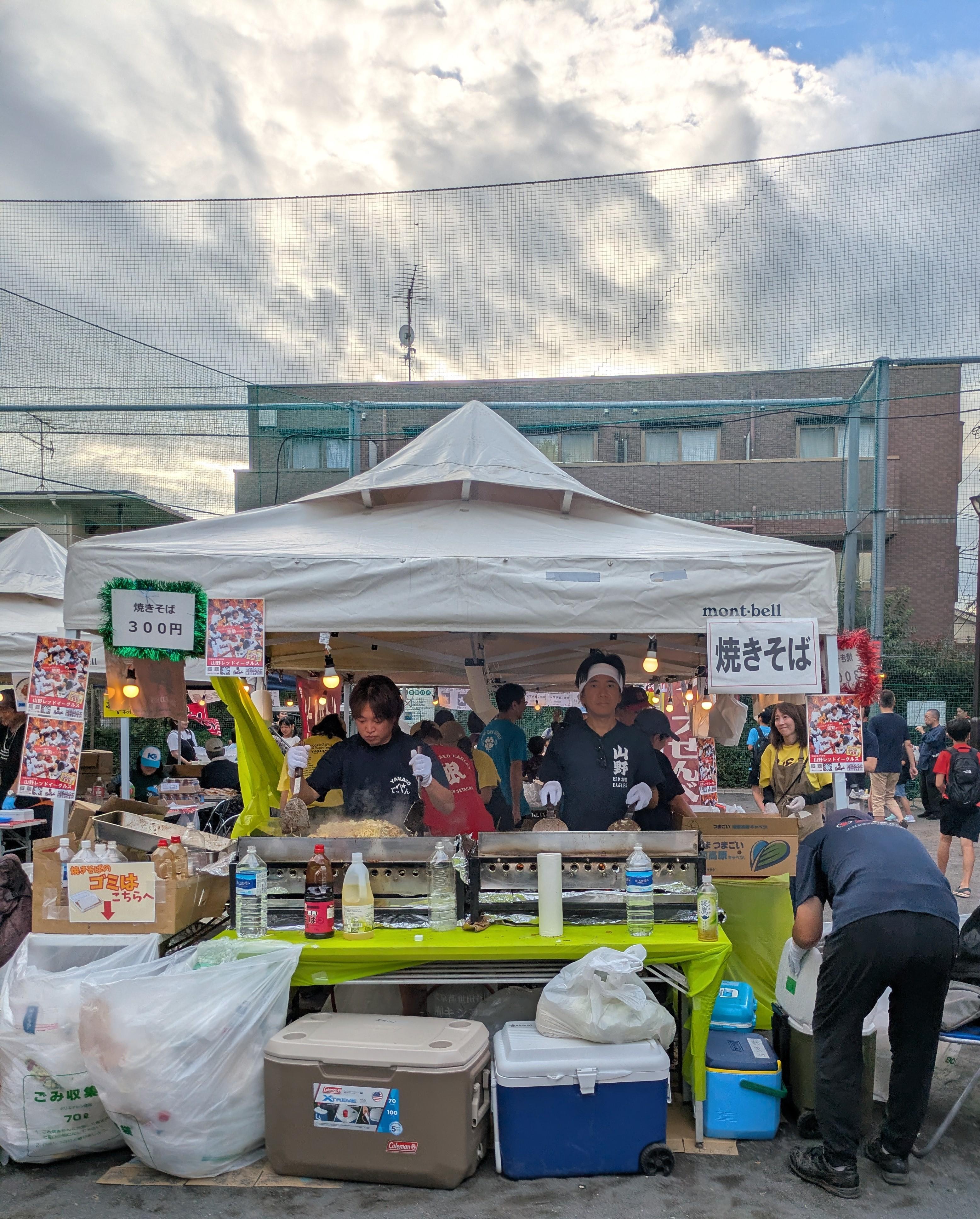 The Kinuta Mitsumine Jinja (shinto shrine) hosted an autumn festival for the community. Kinuta Mitsumine Jinja is a small shrine, so the event was itself pretty small. It consisted of a band playing live music on a stage beside the shrine, with vendors selling food and drink from their tents in the backyard behind the shrine. The whole affair had the footprint of a small park. The vendors sold food such as yakisoba as well as a wrap with cheese and pork sausage, similar to a tortilla or quesadilla. There were games such as roulette and katanuki. Katanuki is like the Korean dalgona from "The Squid Game," where a shape is punched into a slab of candy and kids carve out the shape with a toothpick, and depending on how well they do they get a prize. I didn't partake in any of these games, though. It was a little too crowded for comfort, so I just listened to some music, picked up some yakisoba and went home.