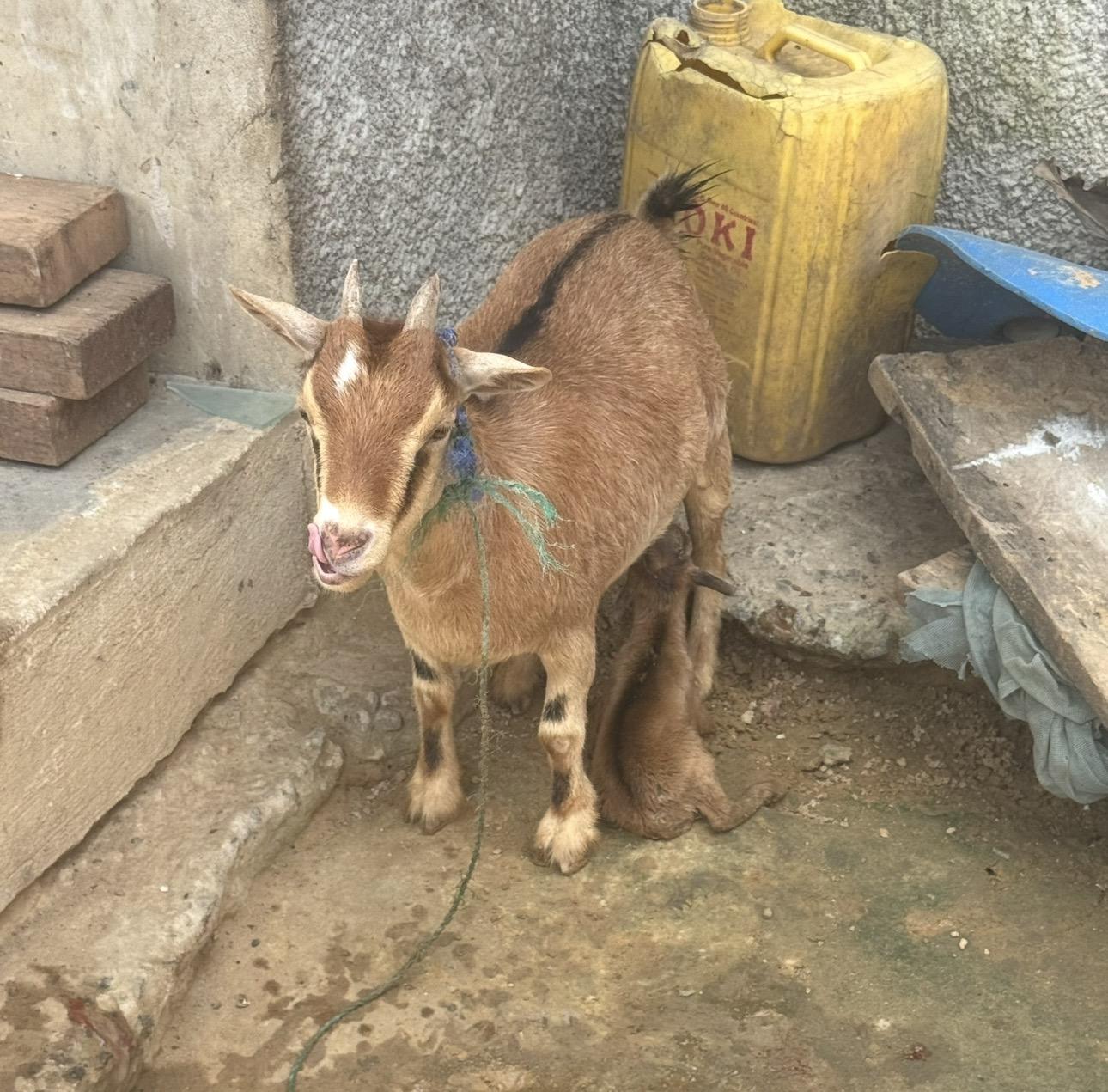 This goat just gave birth right outside my neighbor's front door