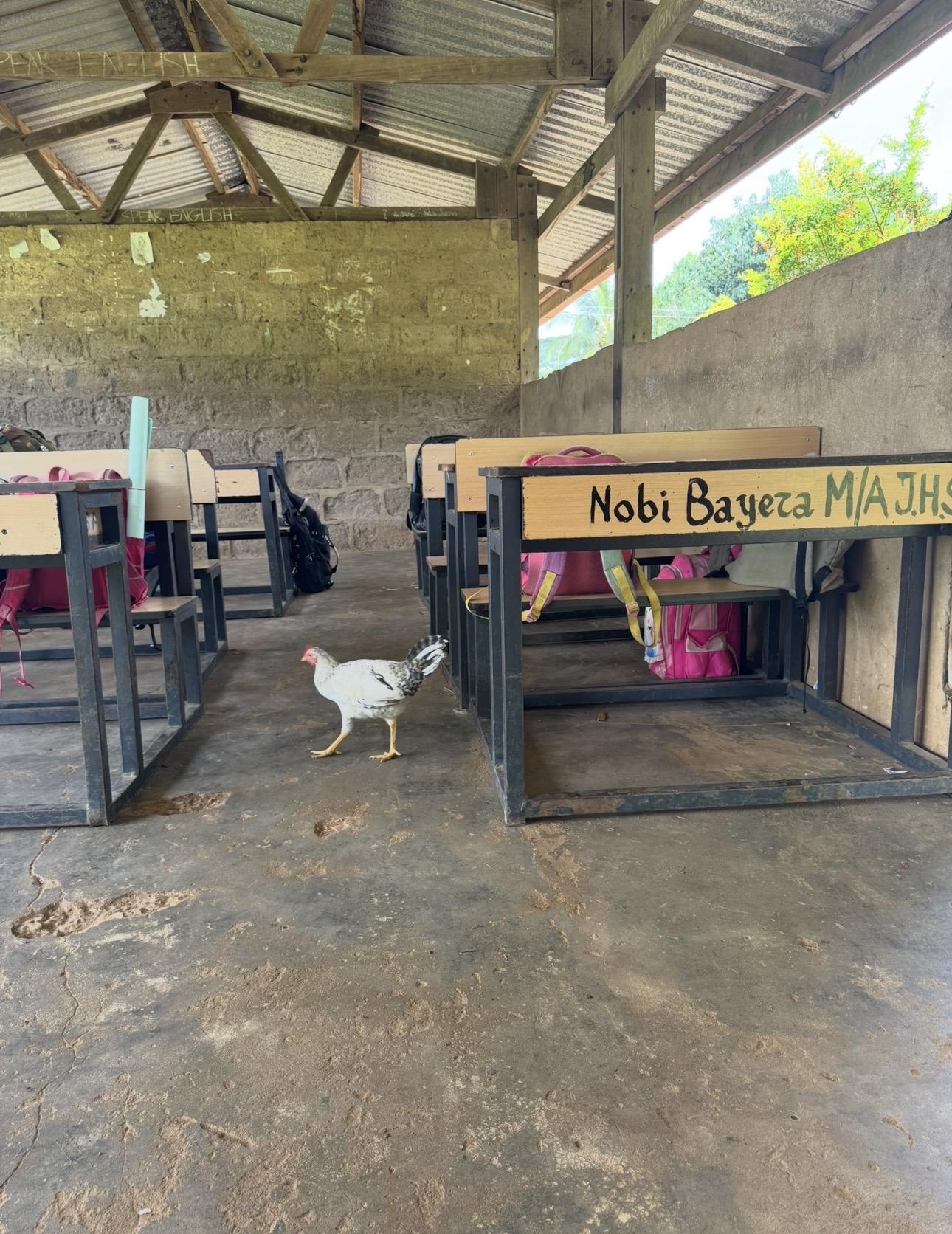 Chickens are free-roaming, including in the classroom!