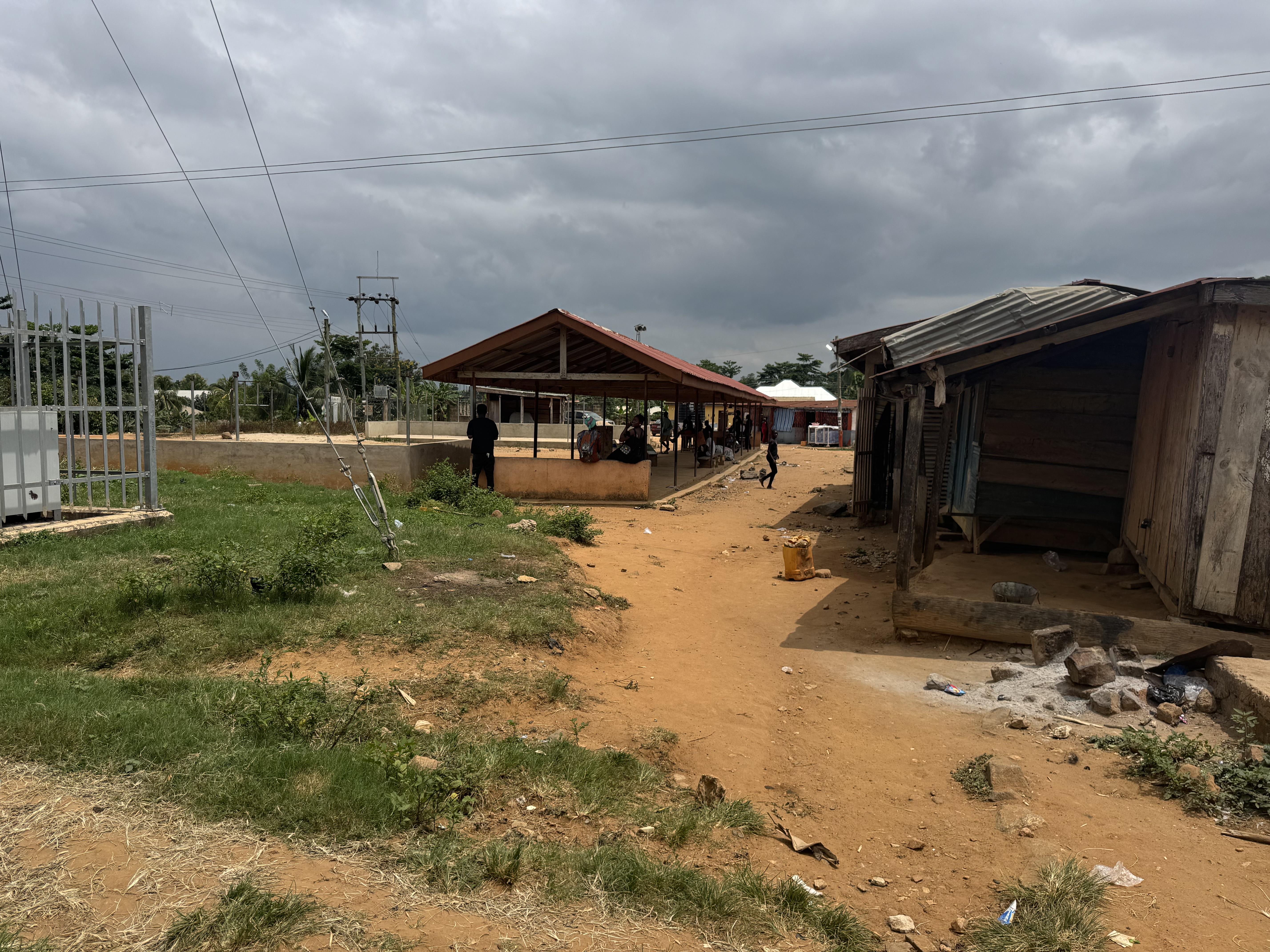 In the wet season, the sky is regularly grey and dark as shown here above the village taxi stand