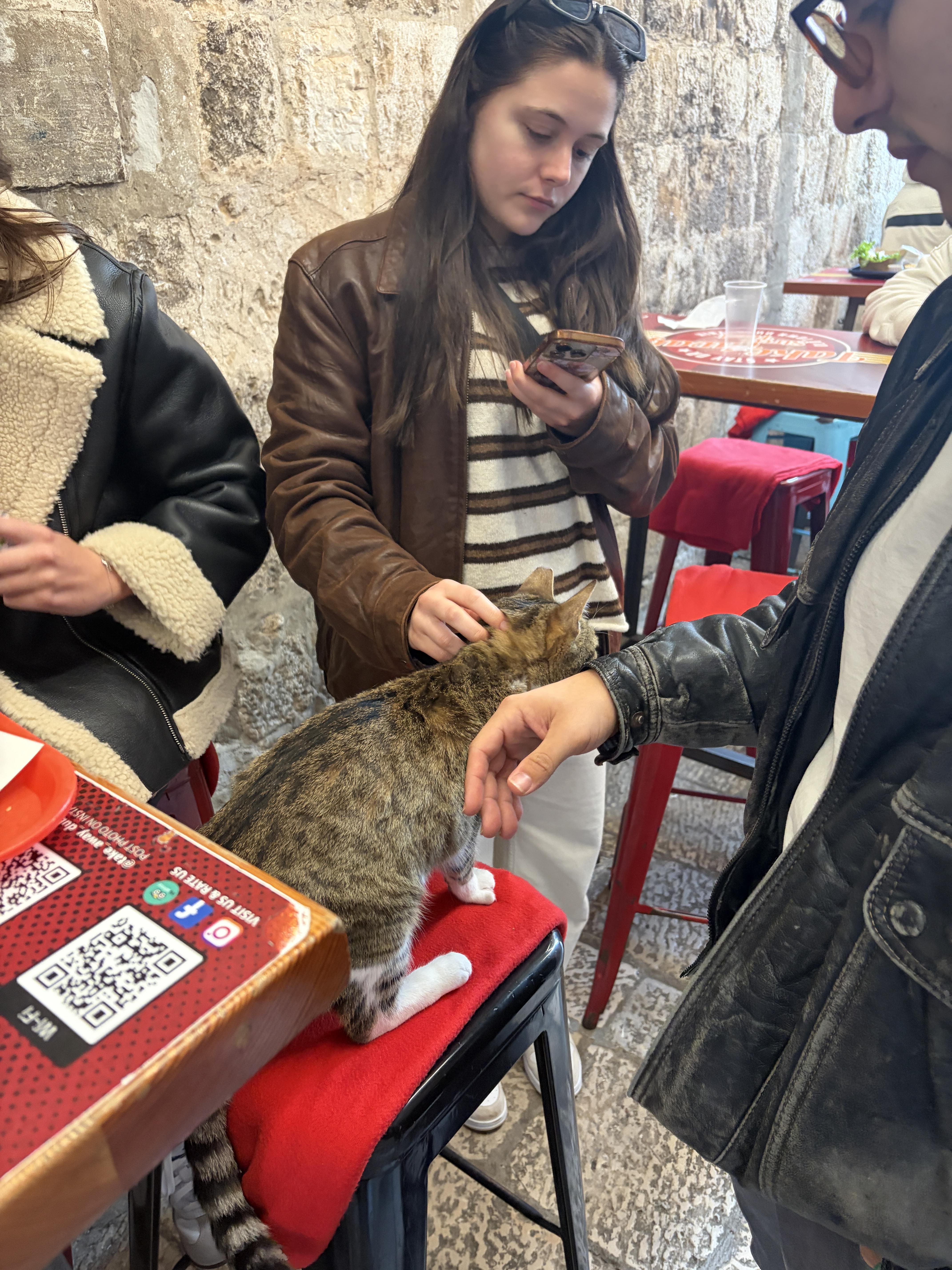 Ćevapčići are made by mixing ground meat with spices, shaping them into small sausage-like pieces and grilling them. Burek is made by layering very thin dough with fillings like meat or cheese, then baking it until it’s golden and flaky. Many pastries here are made fresh every morning in local bakeries. It’s one of my favorite aspects of daily life in Dubrovnik! Before class, my go-to is usually a chocolate croissant. Coffee is typically served strong in small cups and meant to be sipped slowly during conversations with friends.