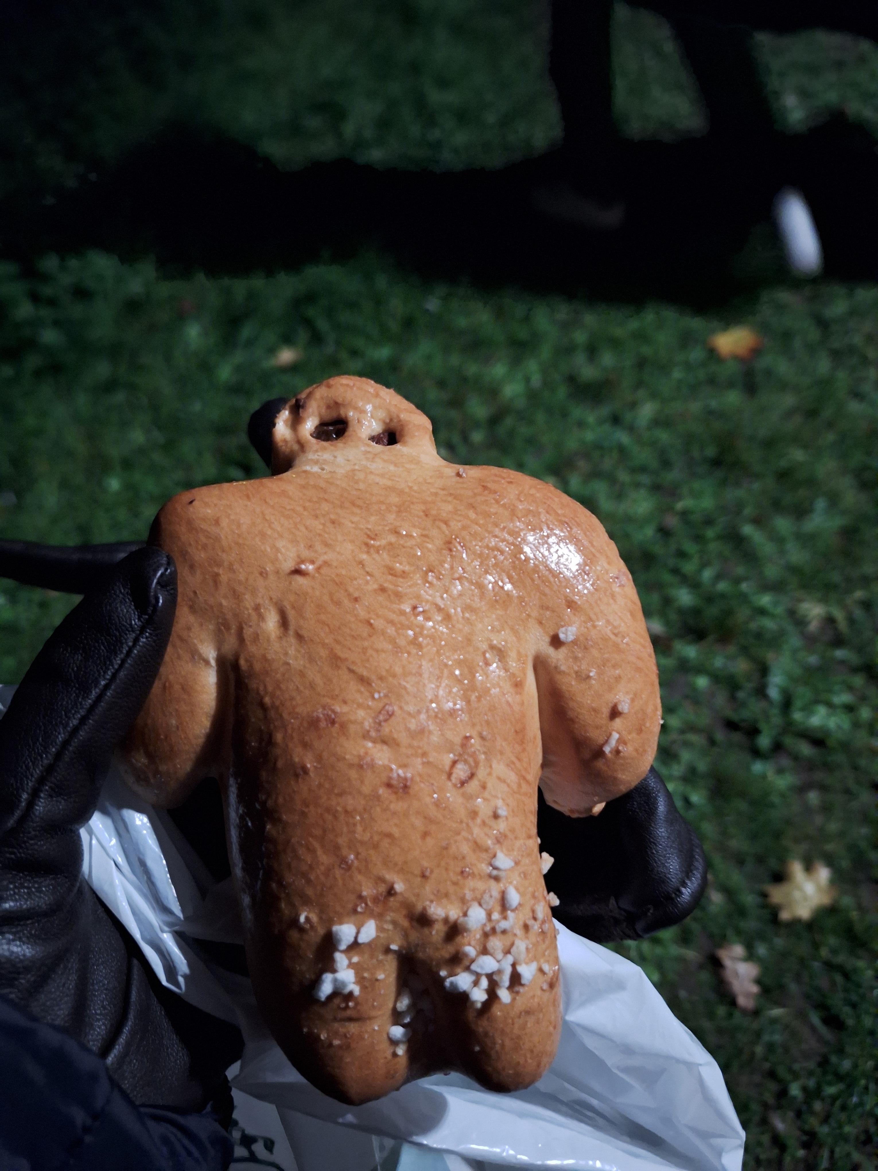 One such type of bread is the Hefekerl. It is unique, both in flavor and in traditional significance -- and it has many, many names! Hefekerl is a type of sweet bread roll that is shaped like a man, with raisins for eyes. Depending on where in Germany you are, this little guy could be called any one of over twenty-five different names, the most common being Weckmann, Stutenkerl and Martinsbrot. Most name variations incorporate what he is: a man made of bread. In my town, everyone called him Hefekerl, or “yeast guy”.
