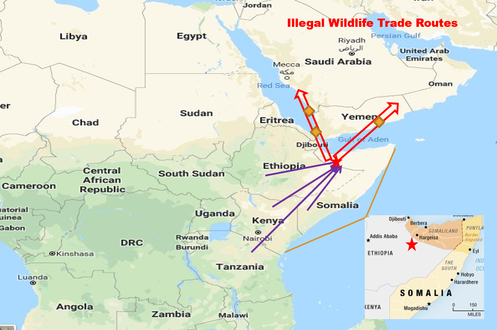 People in the Middle Eastern countries often want to have cheetahs as pets, due to their more docile nature and easy trainability. However, cheetahs do not breed very well in captivity, meaning that in order to supply these animals for the pet trade, they have to be sourced from the wild. The Horn of Africa is very close to the Middle East, and getting across the ocean takes only a few hours there, so cubs are trafficked through that region after they are taken from their mothers.