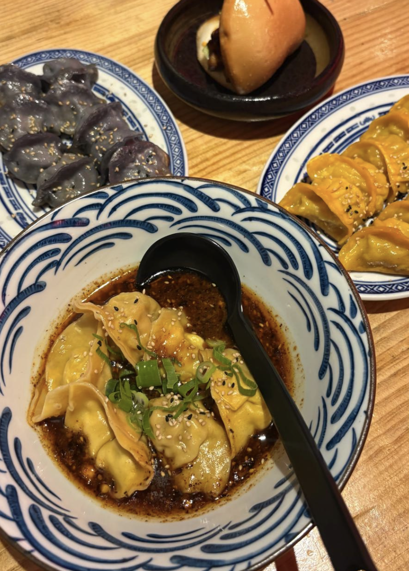 The photo with the pizza shows a pizza boloñesa (Bolognese pizza) with a tomato sauce base, minced (ground) beef, olive oil and parsley. I am seated at the Metro Gran Vía plaza, a popular tourist area. The coconut pancakes at the café in the image remind me of some of my favorite pancakes at home. The picture with my laptop shows me working on homework while eating a turkey, pesto and arugula sandwich. On another occasion, I had some delicious dumplings at a restaurant near my apartment while getting over a cold, as shown in the last photo on this page. Finally, I was quite surprised to see a Stranger Things pizza at the grocery store!