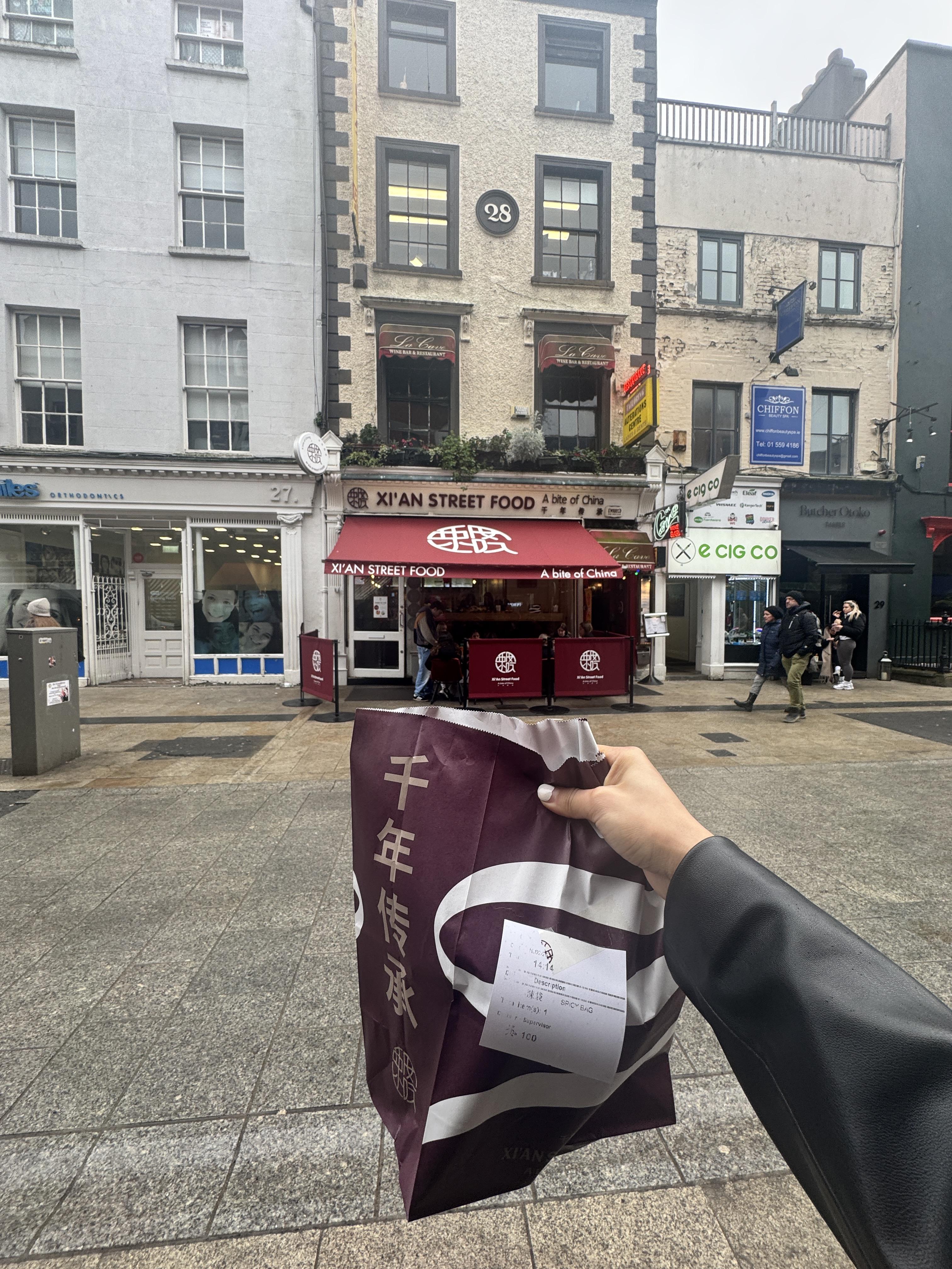 The spice bag is connected to the local environment through Irish takeaway culture and eating habits. It is often eaten in the evening, especially after social events or nights out. While the spices are not locally produced, ingredients like potatoes and chicken are commonly grown and used in Ireland. The dish reflects urban Irish life, showing how global food influences mix with local ingredients and lifestyles.