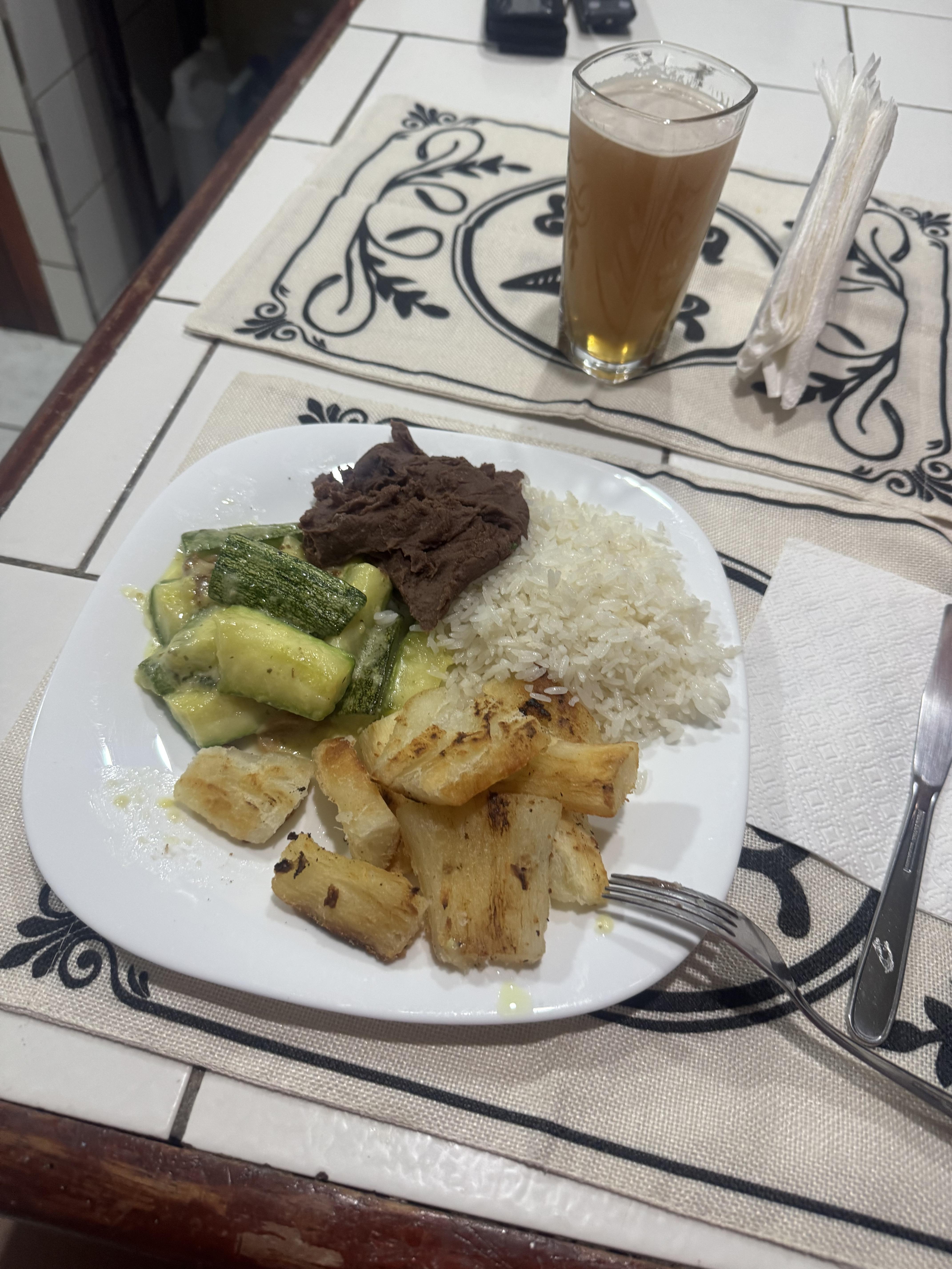 I have tried many types of new food since I have been in Costa Rica. I have tried their most popular food, gallo pinto (a variation of rice and beans). I have also tried yuka (potato-like), maduro (plantains), chifrijo, Caribbean rice and beans (they use coocnut milk to make it!), empanadas, guava, orange watermelon, starfruit, sour mango, variations of oranges and much more.