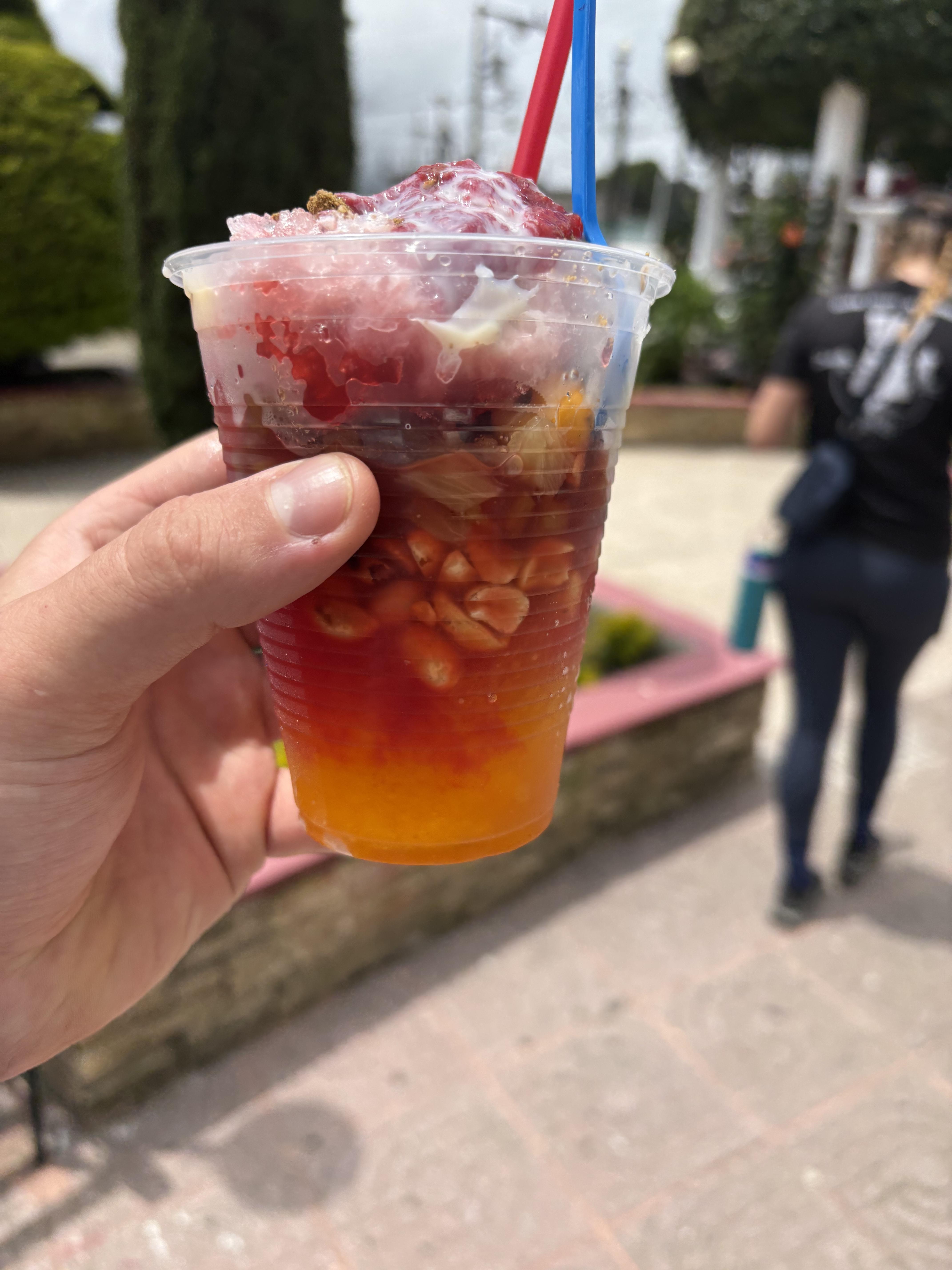 While living in Guatemala, I have so many favorite foods. My favorite refa is a tostada con frijoles volteados with a mango or a tostada con pico de gallo con carne de res. My favorite basic meal is making huevos desvueltos (scrambled eggs) with in-season vegetables. My favorite holiday meal is fiambre, and my favorite desserts are granizadas hawaianas and espumillas