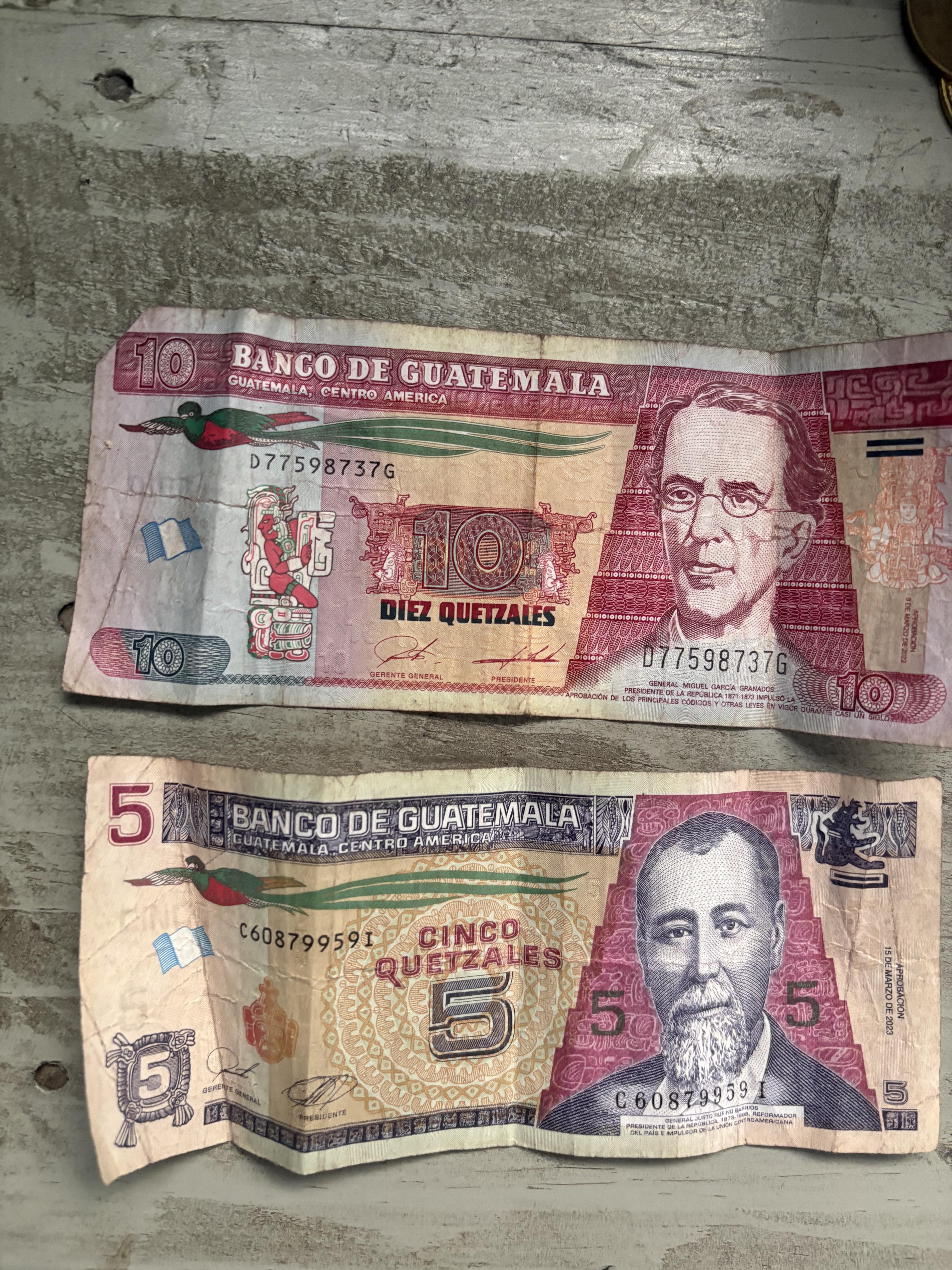 In Guatemala, they use the Quetzal as their form of money. At the current exchange rate, for every US Dollar you would get about 7 Quetzales. The cool thing about their currency is that it is named after their state bird, which is the Quetzal. It is a vibrant red and green bird.