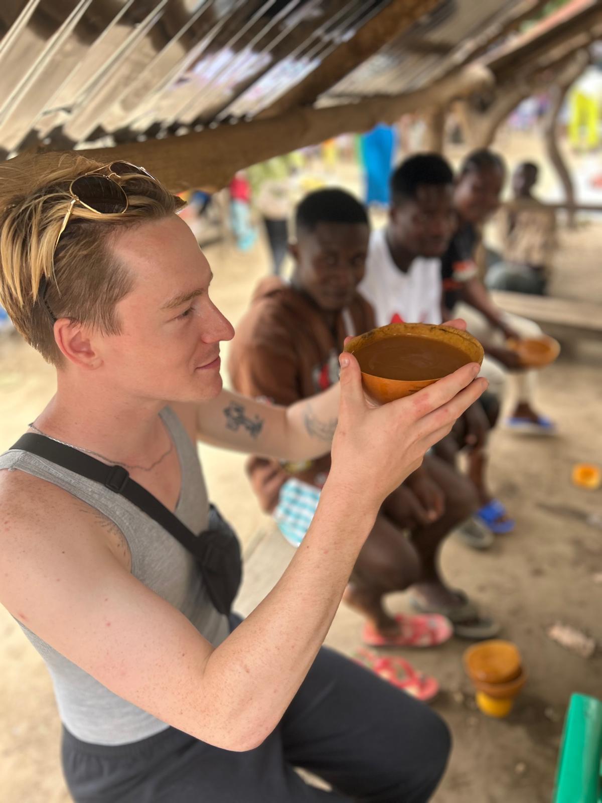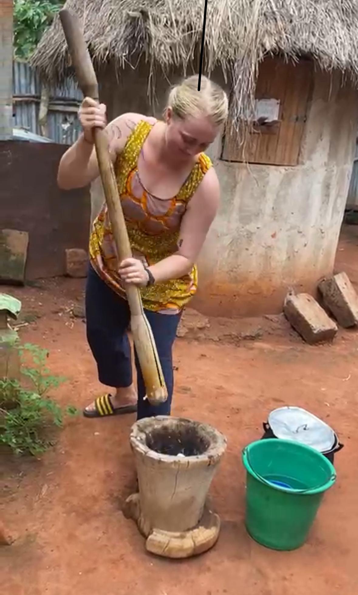 When I first tried fufu, I was super excited because people had been talking about it for months, but I never had the chance to try it since I arrived before the harvest and yams weren’t available yet. When I finally tried it, I loved the taste and the texture, but I was really nervous to eat with my hands in front of new people. The taste isn’t very strong, it’s kind of like eating mashed potatoes, but the texture is firmer and silkier than mashed potatoes. The sauce that goes with the fufu is what really makes or breaks it. We don’t have refrigeration here, so a lot of the time the sauce is made with a ton of spice to help keep parasites and flies away. Most of the sauces are so spicy that you can feel the heat on your hand before it even reaches your tongue. One time, the sauce was so spicy that I got a rash on my arm from it dripping down while I was eating with my hands. Don’t rub your eyes after eating!