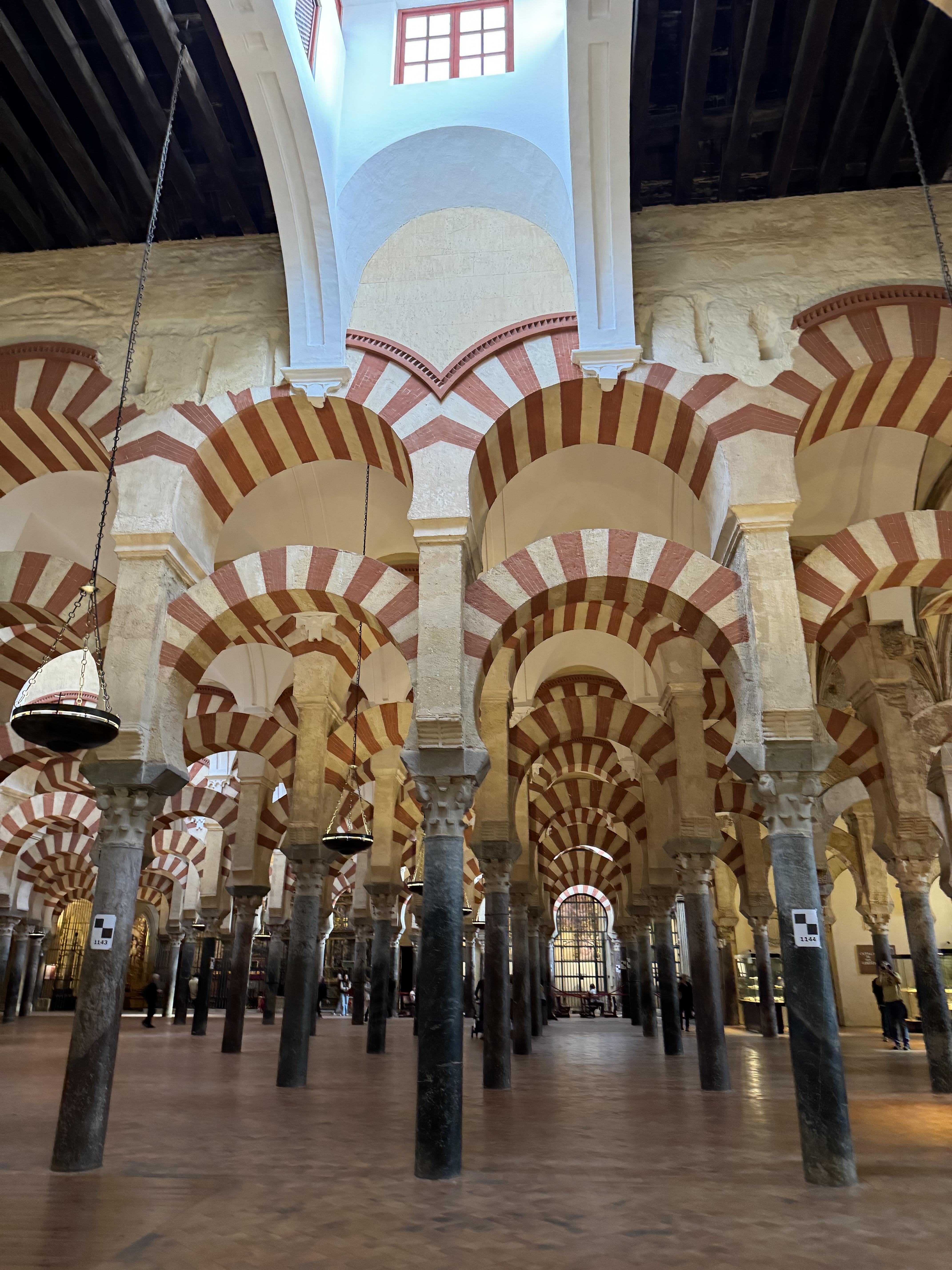 To give a little historical context, something that differentiates Spain from the rest of the European countries is that it was under Muslim power for centuries. Córdoba is located in a southern region of Spain called Andalusia, and it was once a vibrant Islamic cultural center. In fact, it was actually the capital of the Caliphate of Córdoba, a major Islamic power and cultural center in the world. A couple centuries before Islamic rule, Córdoba was also under Roman power, so there are some Roman relicts in the area, such as some Roman columns that were once part of a temple.