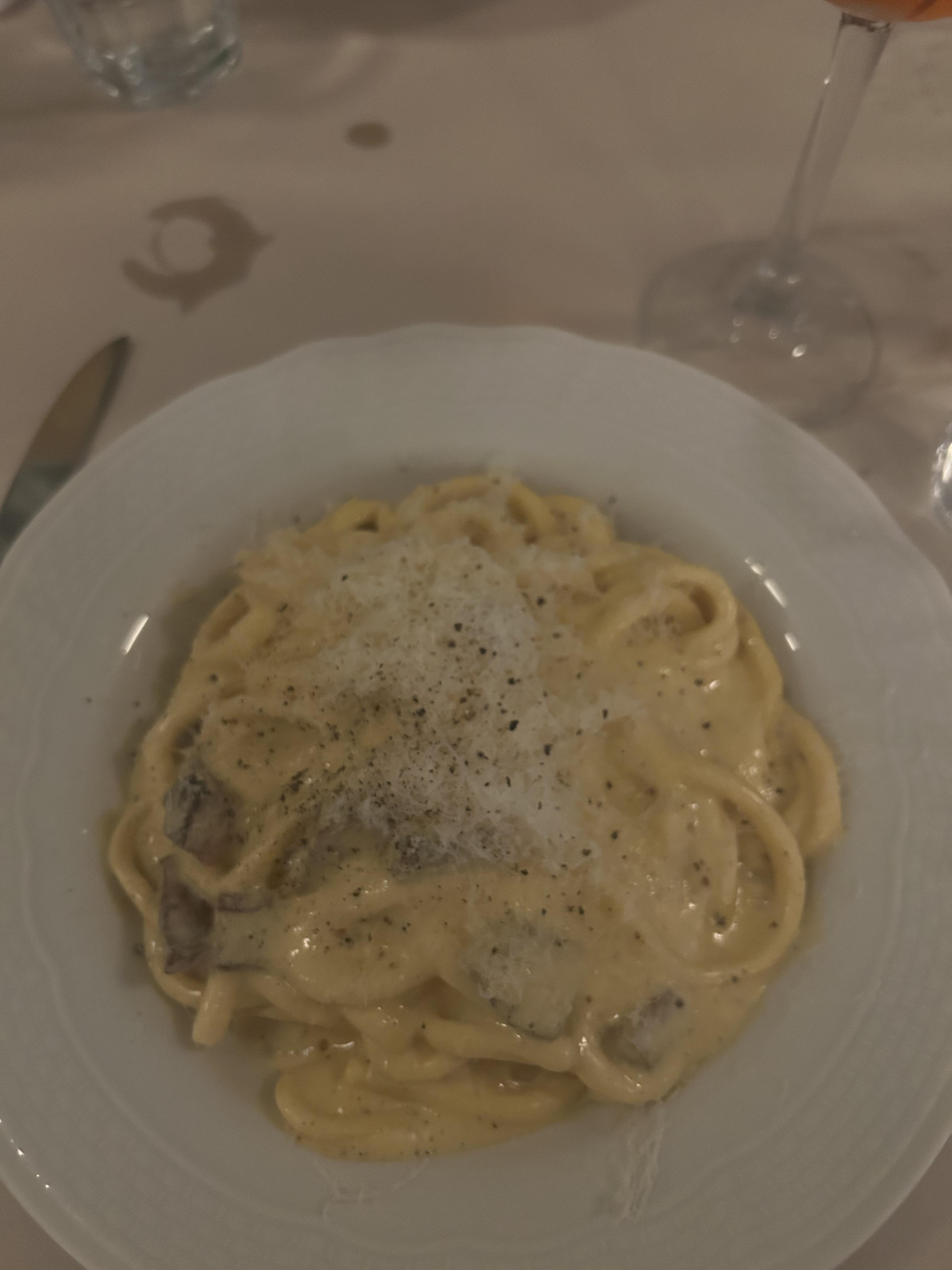 I ordered meatballs as an appetizer and carbonara pasta for my main dish. It was muy delicioso (very delicious)! For dessert, I had tiramisu.