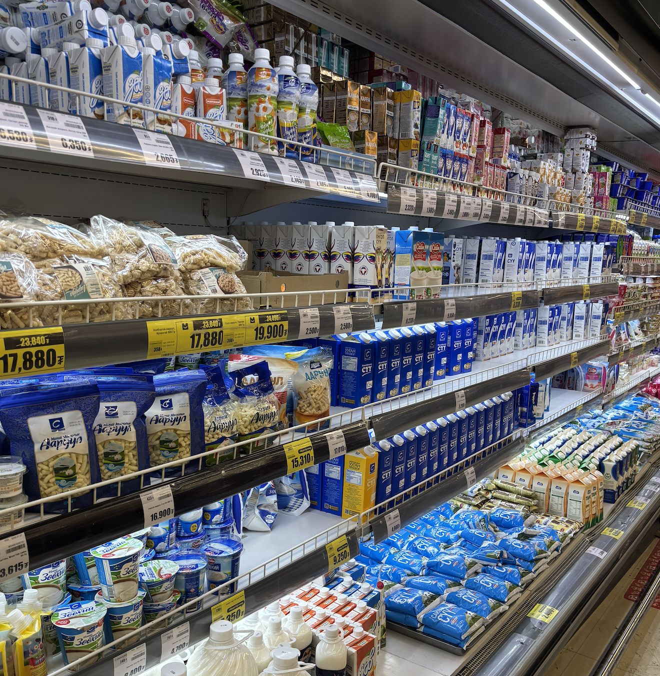 A bottle of water usually costs between 900 MNT (~$0.25 USD) and 2,000 MNT (~$0.56 USD).