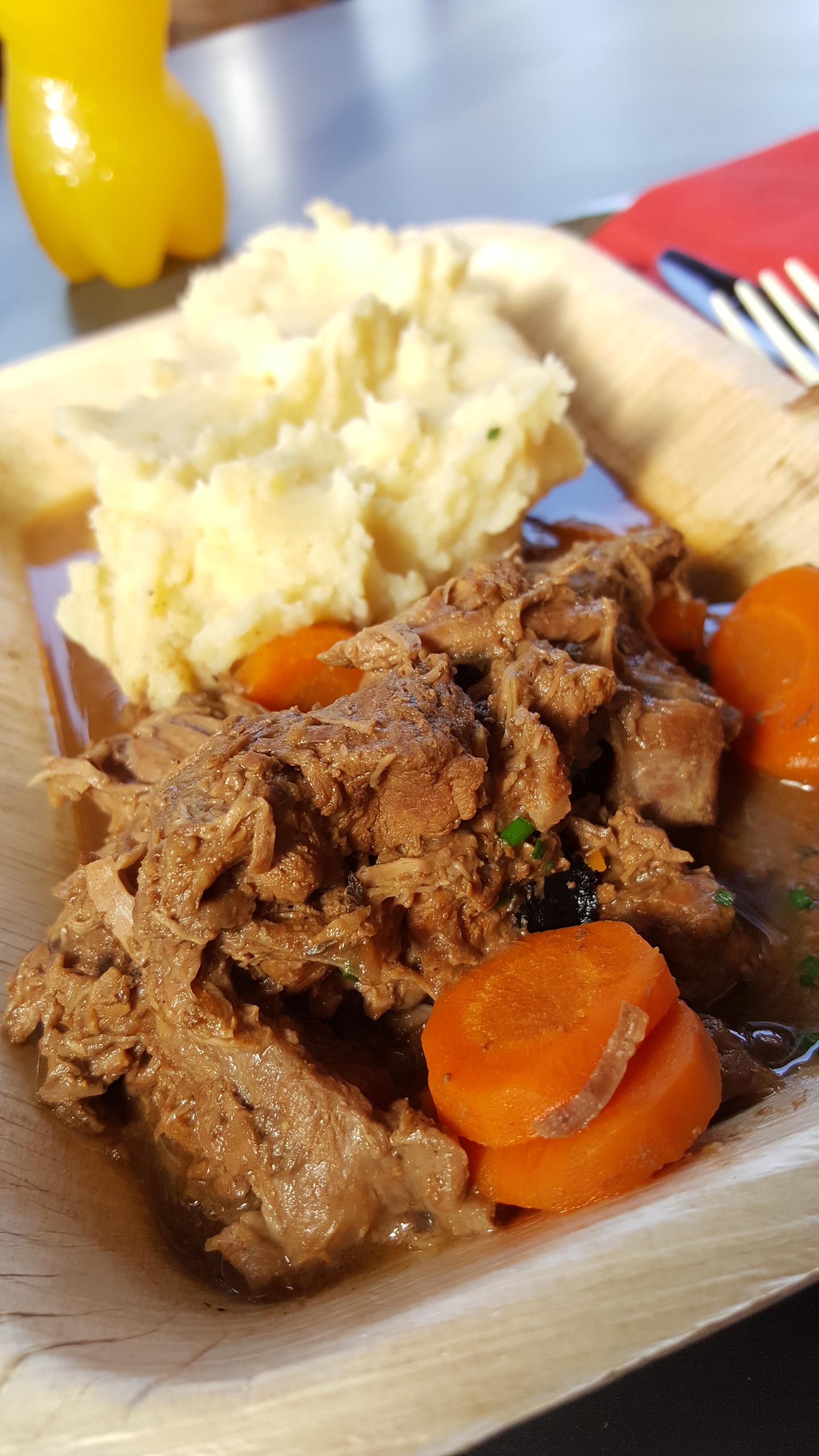 Let me tell you about a dish I had last week. I had an authentic local dish in Giverny, in a restaurant next to Claude Monet's house. It is called daube normande, and it's a traditional stew with beef and carrots. The sauce is made from one of Normandy's most famous products, apple cider!