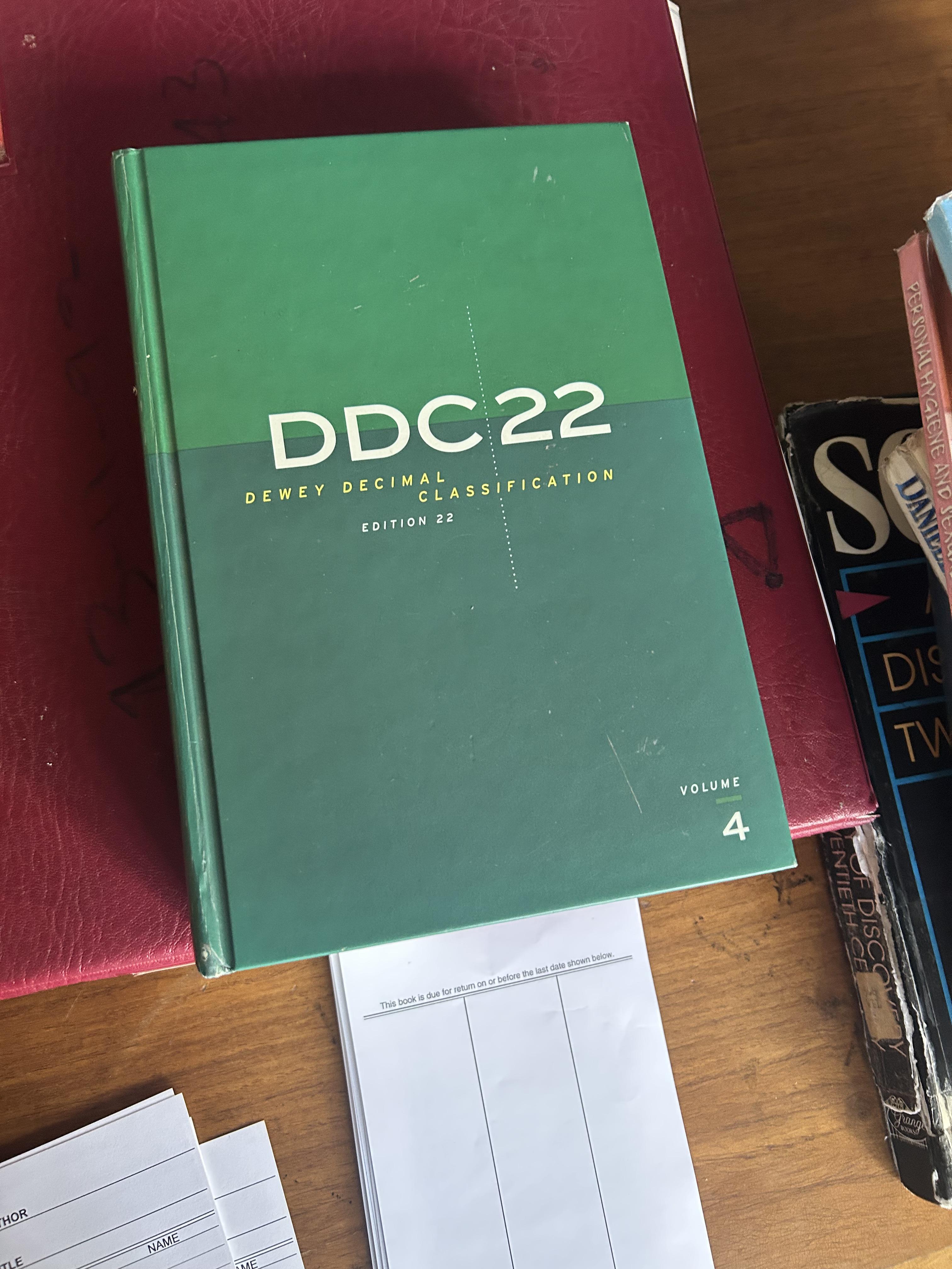 This is the Dewey Decimal Classification index, and I use it to help me catalog books to add to our shelves