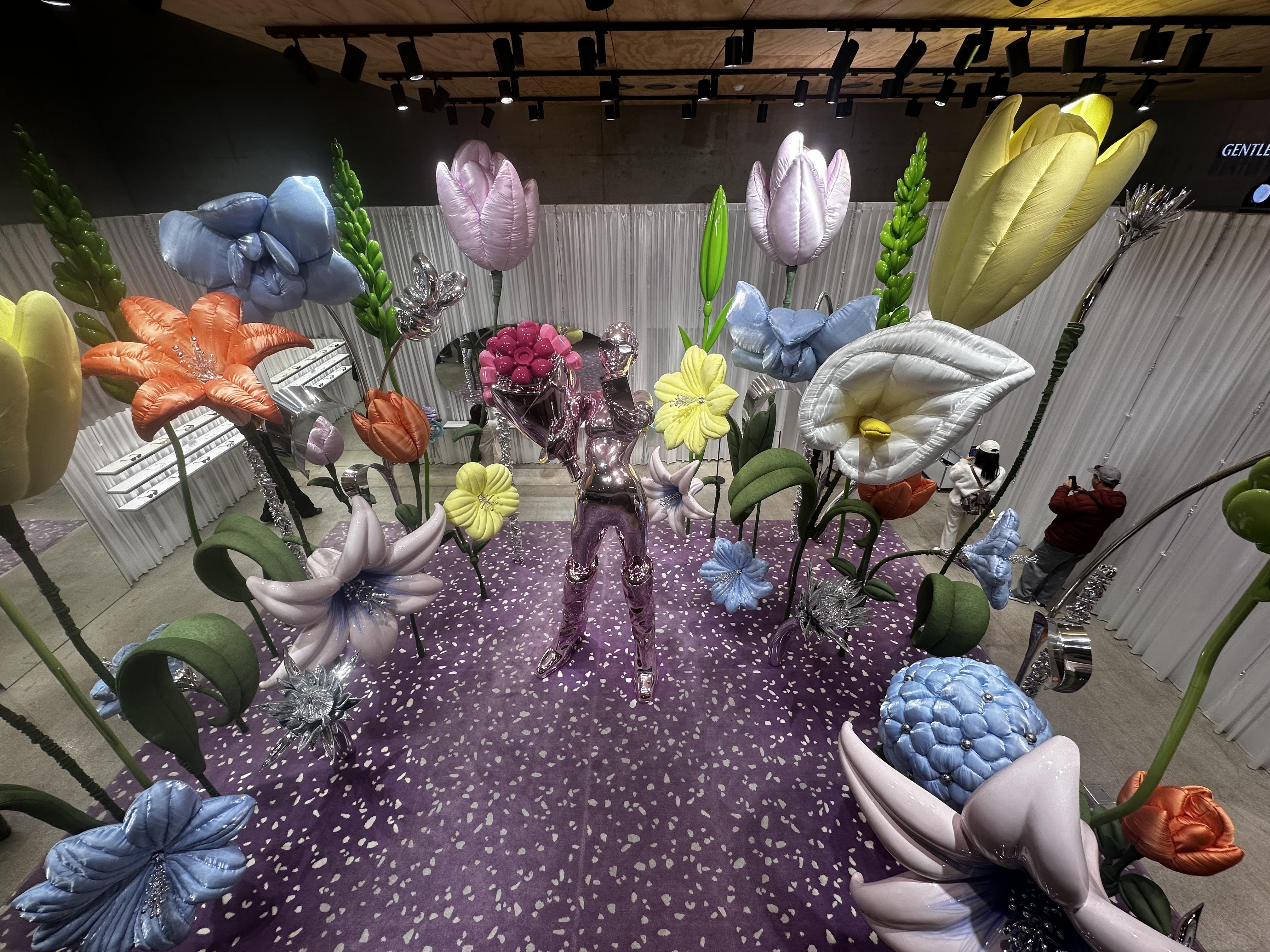 While at Dosan Park, I was able to go to different exhibitions and settings in stores. One of the stores sold mainly sunglasses and had a whole installation of a giant mannequin with glasses and flowers even bigger than that. I believe this was a type of dedication to spring. Spring is very celebrated here. The colors were vibrant and the size made it even more interesting to look at. It was very unexpected to see this at a store that sells mostly only glasses, but I believe that their originality and attention to art and detail definitely set them apart.