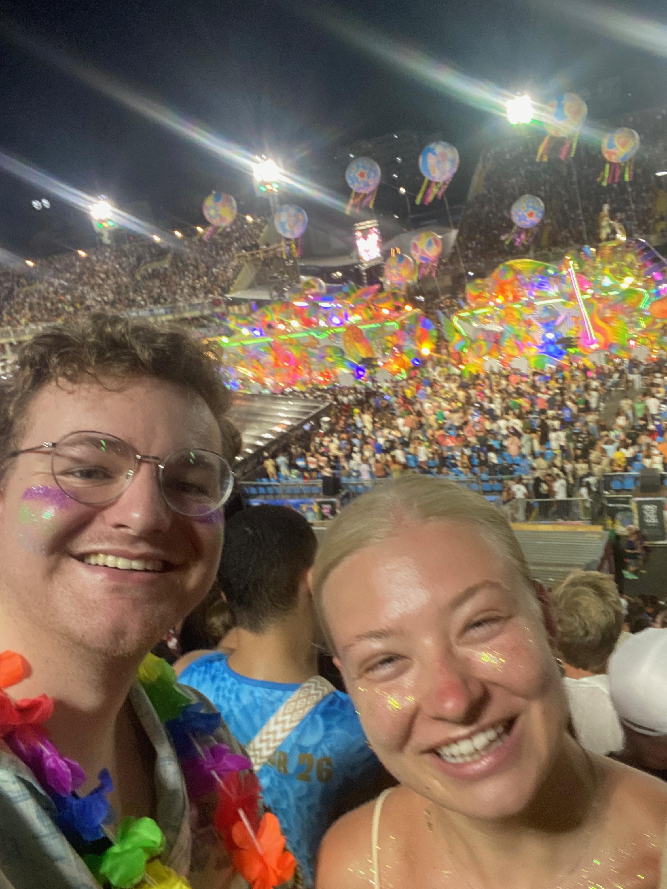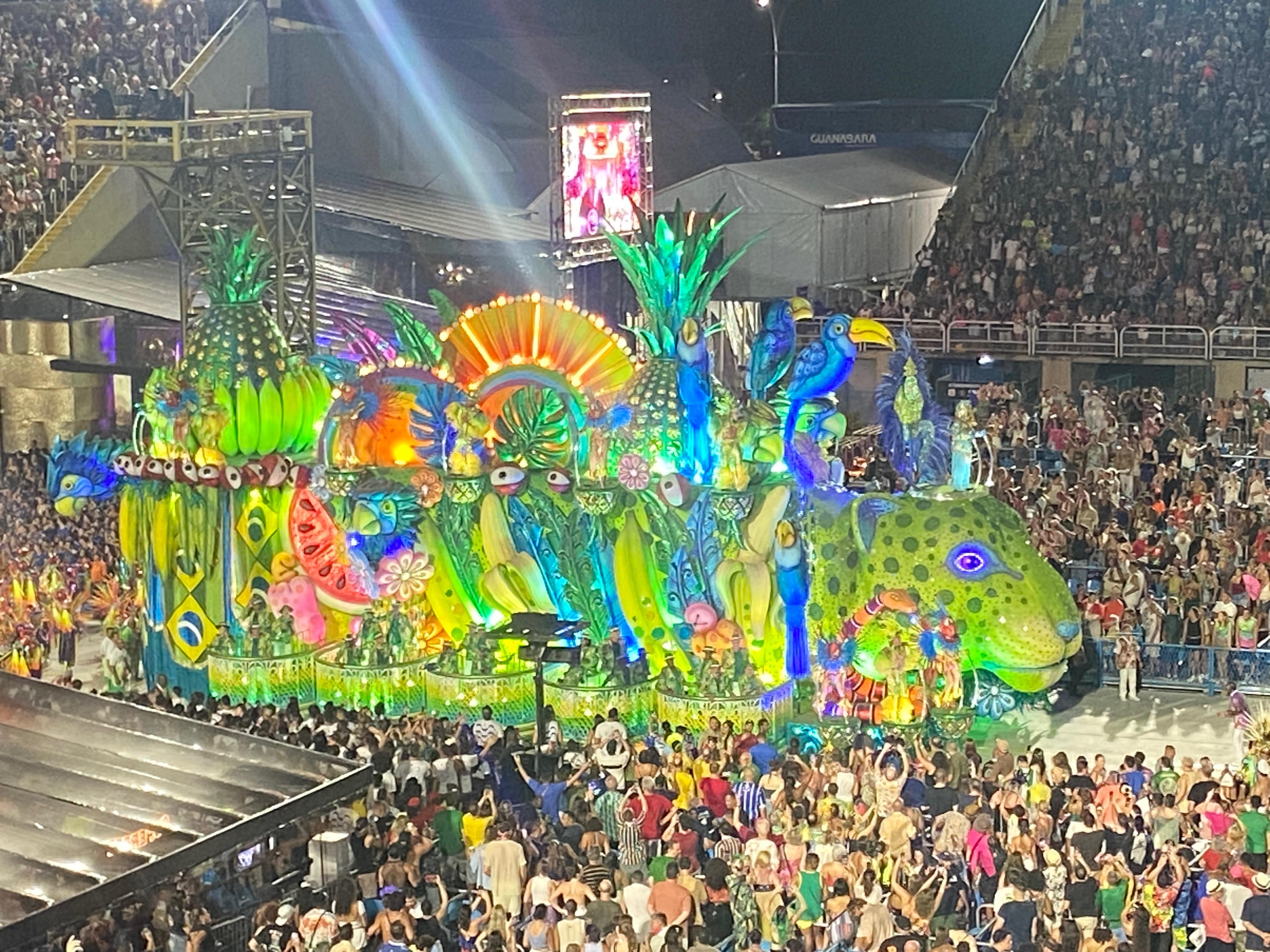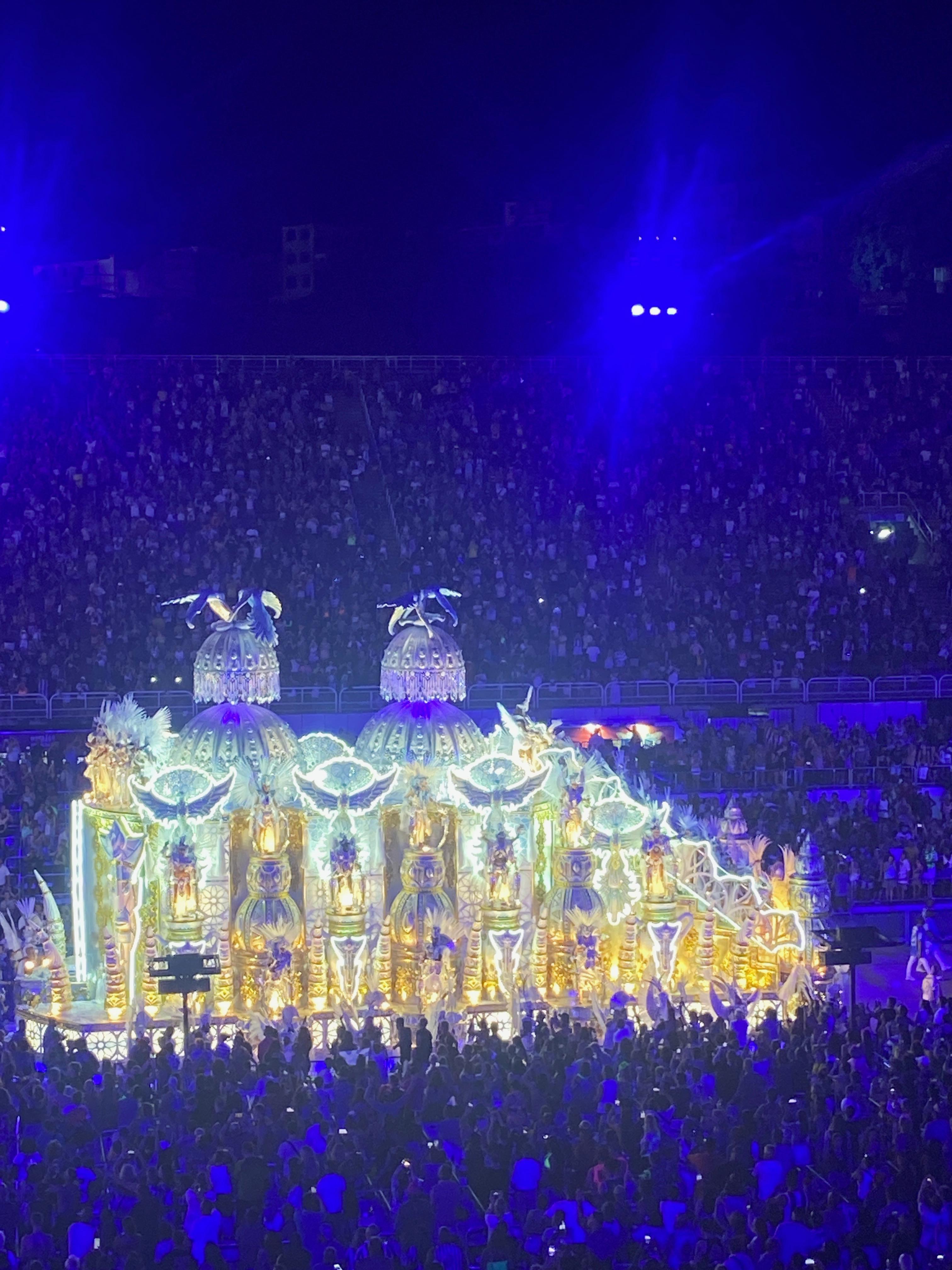 La segunda festividad del Carnaval de Río es el desfile de las escuelas de samba, que se celebra al final de la temporada de Carnaval. Mis amigos y yo compramos entradas para ver este evento en el Sambódromo, un gran estadio en el centro de la ciudad. El evento duró desde las 22:00 hasta las 5:00, donde vimos cómo varias escuelas de samba exhibían a sus impresionantes bailarines y fantásticas carrozas mientras marchaban al ritmo de famosas canciones de samba. Dado que estas escuelas de samba son juzgadas en una competencia muy respetada, sus exhibiciones se vuelven más impresionantes cada año. Cada procesión fue diseñada en honor a un famoso autor, músico o figura pública brasileña. Al presenciar el espectáculo, aprendí más sobre la rica historia de Brasil. Para los brasileños, este evento es un momento poderoso para apreciar la vitalidad de su cultura.