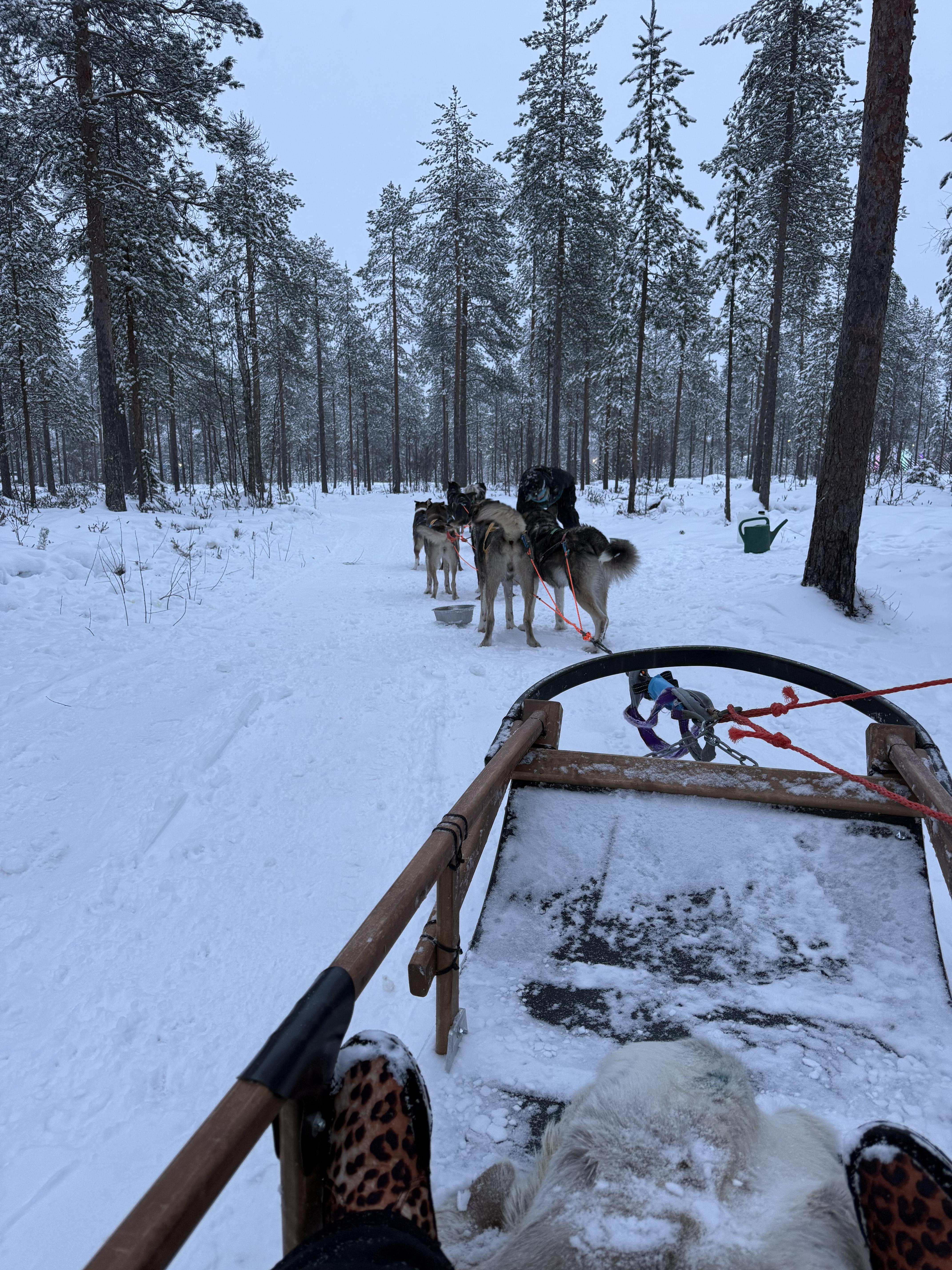 There are so many activities to do in Lapland, Finland, other than, of course, seeing Santa's village. In the village, I got to see his farm of pets. There were bunnies, alpacas, donkeys, chickens and of course many reindeer. I also got to enjoy a sleigh ride pulled by huskies! It was so fun and so exciting. The huskies were so excited to pull us and loved it. After husky sledding, I went to a ski resort and tried cross country skiing for the first time ever. Even though I have downhill skied regularly most winters, this was totally different. It was a ski in the forest with lots of snow. I loved it!