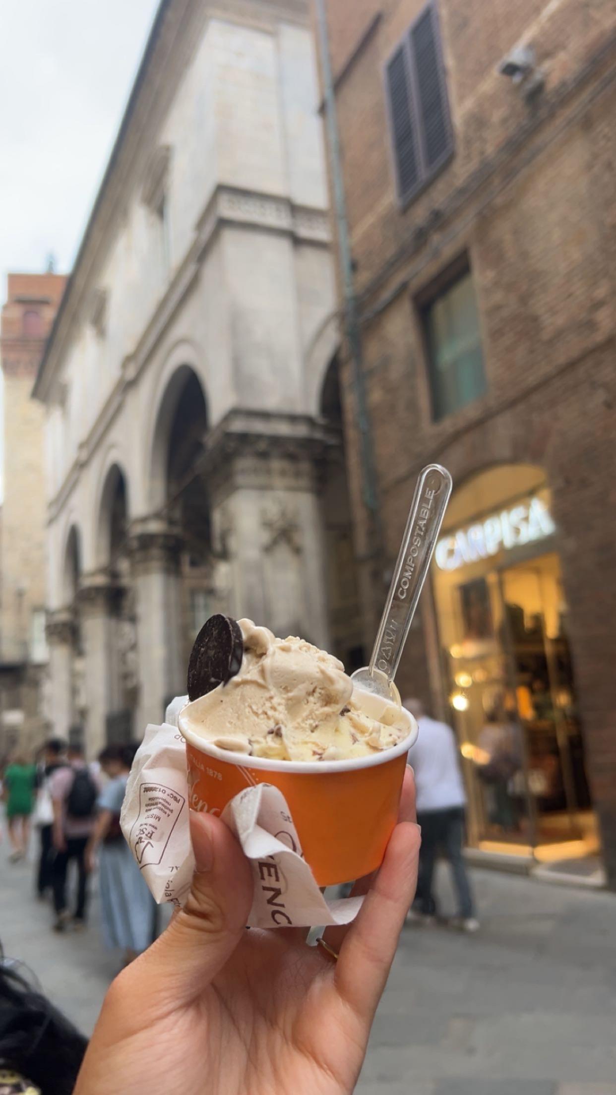 Gelato is almost like ice cream, but creamier and smoother. It comes in many flavors including pistachio, chocolate, vanilla, hazelnut (my favorite) and many other unique flavors.