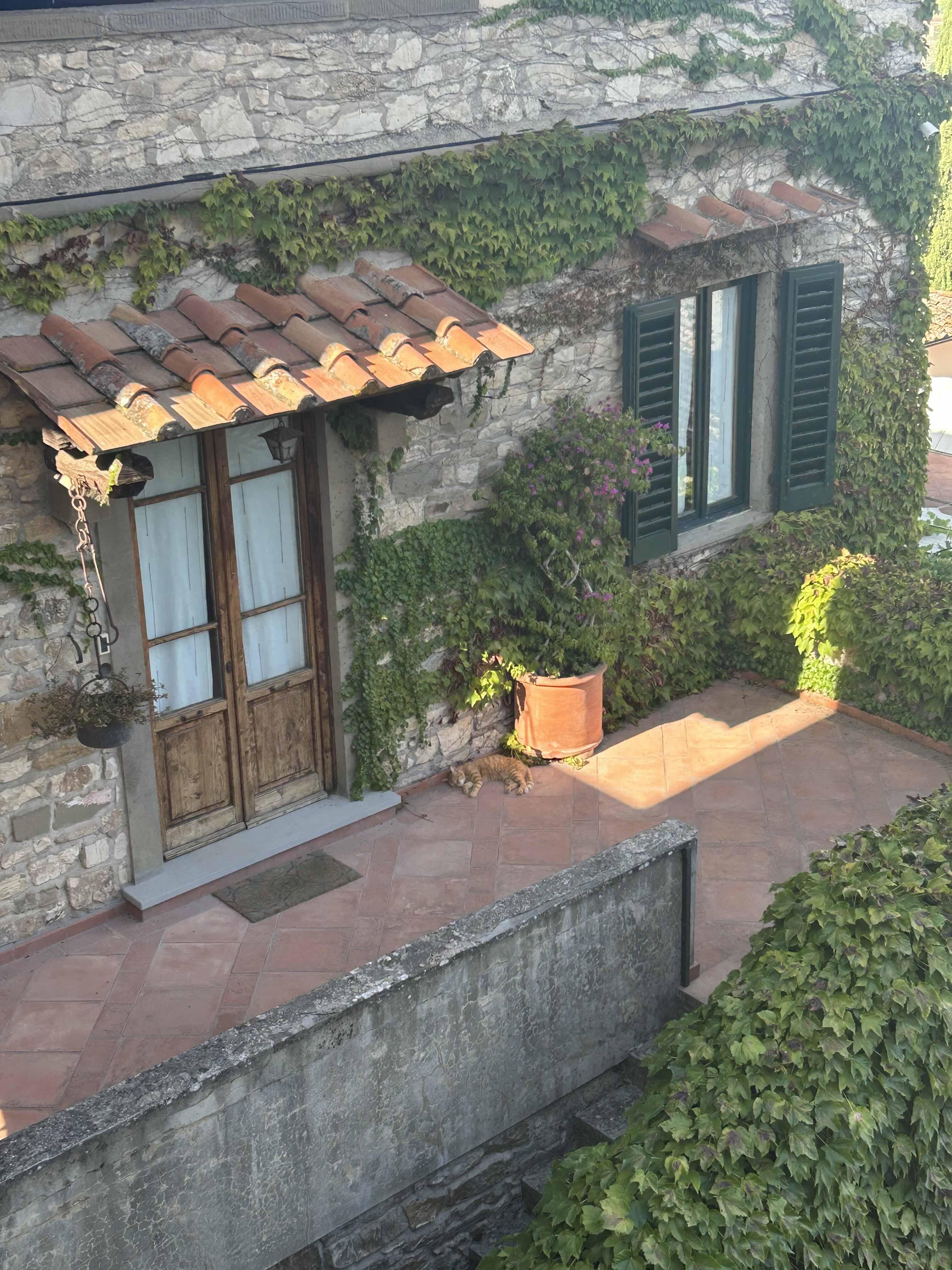 I now live in Florence, and it is incredibly exciting! I am practicing Italian words when I order food and meet new people. The views in Italy are beyond anything I've seen before. I can't resist beautiful views of nature, which is why I decided to take a hike up to view Florence from above! While on this hike, I ran into a cat that was peacefully napping, which was so cute to witness in the beautiful surroundings. On another note, the food here is amazing. My favorites are pasta, pizza and gelato. Gelato is like ice cream, only creamier and sweeter.