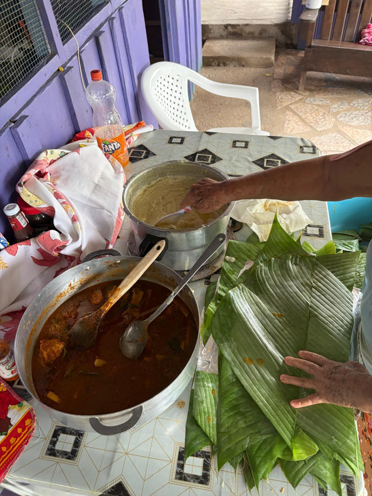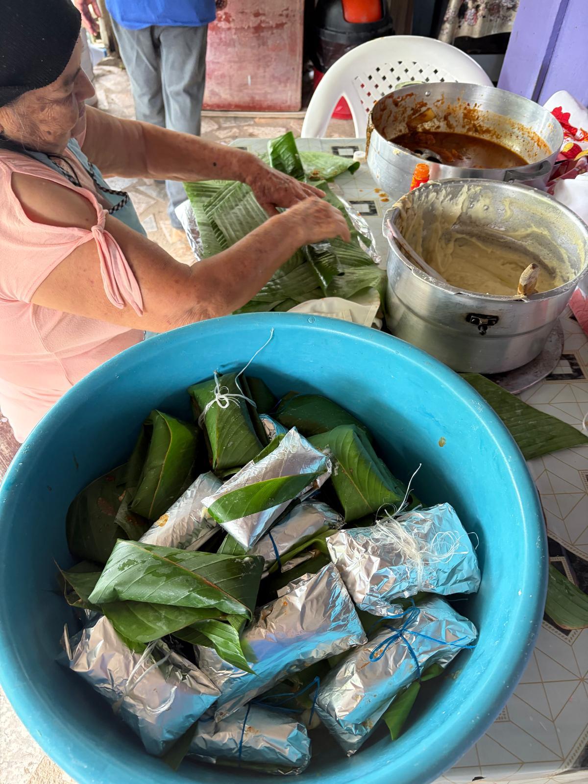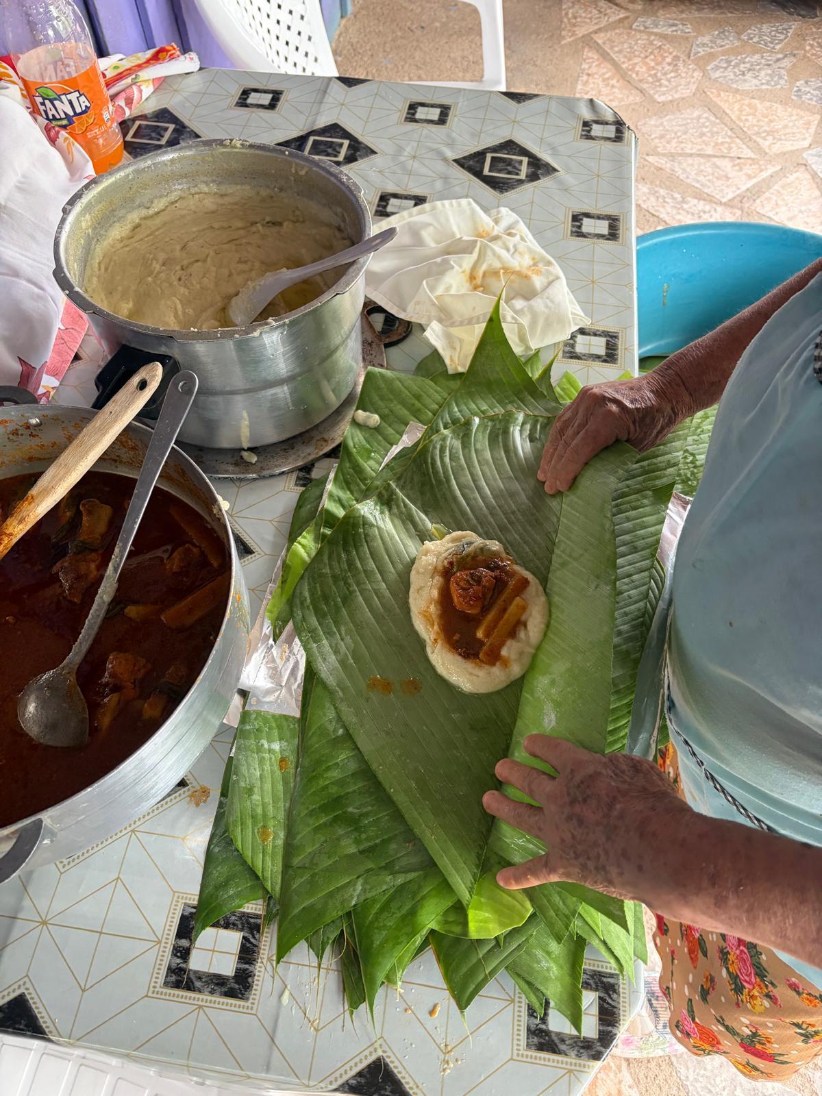 My host mom carefully took a scoop of masa and placed it on top of a banana leaf with a little hole in the center.