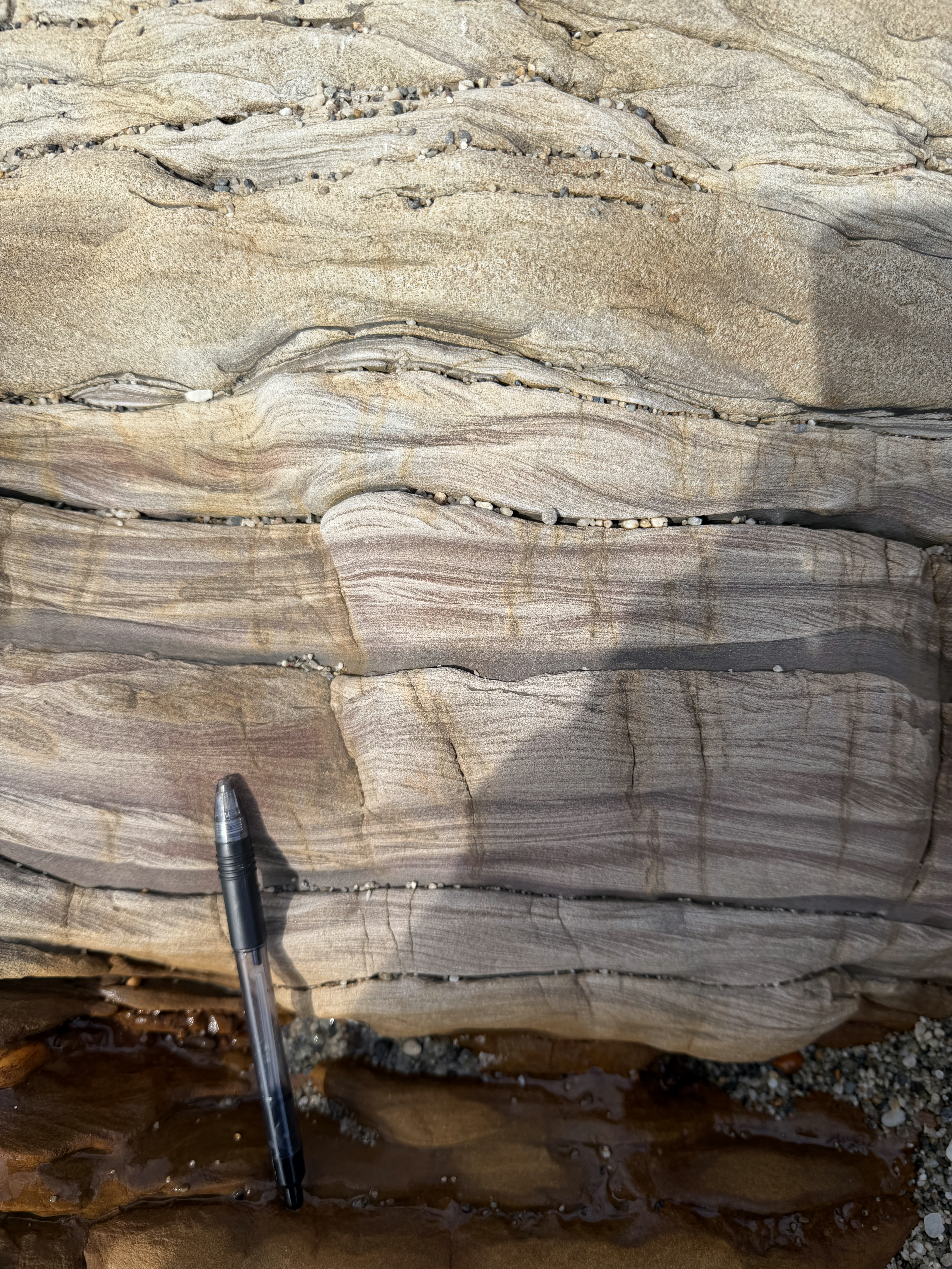 This weekend, I joined a field trip to the West Coast of the South Island. We were hoping to see rock exposures, or outcrops, that relate to processes we have been studying in class. As we drove from the east coast to the west, we crossed the Southern Alps, which are being uplifted along the Alpine Fault at the boundary between the Pacific and Australian plates. Moving west across the fault, you transition onto the Australian continental plate. The change in landscape is noticeable. The terrain becomes steeper, vegetation shifts to dense temperate rainforest and the weather changes constantly. It rained heavily, cleared, and then rained again within short periods. The high rainfall on the western side of the Alps helps explain how glaciers like Franz Josef can exist at relatively low elevations.