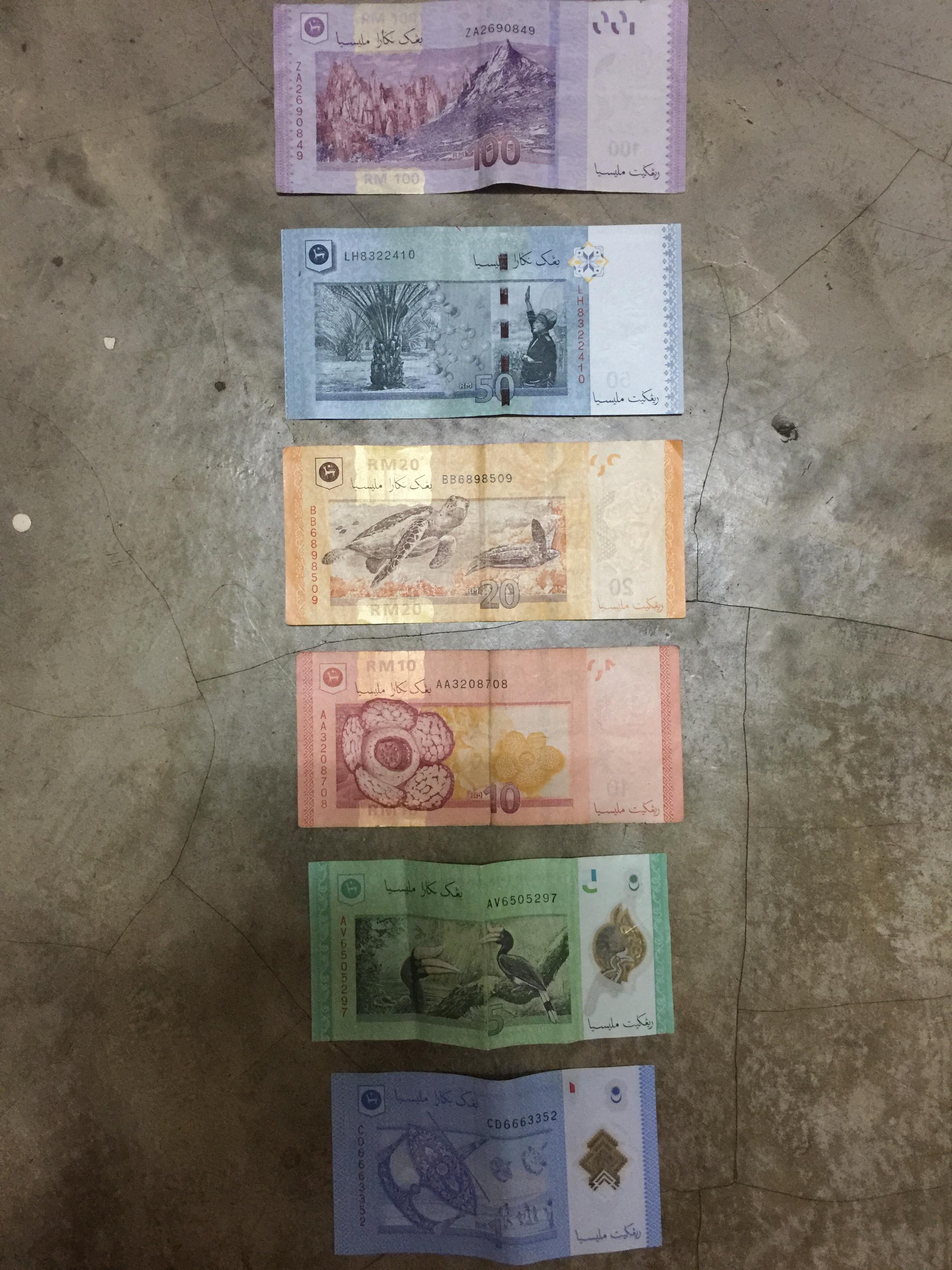 The ringgit! Riggits are smaller than American money and are made out of a durable plastic material so they stay dry even during the monsoon. Each colorful ringgit displays the same front image, while each denomination has a unique back picture. Back pictures display different important aspects of Malaysian culture. One ringgit bills show a wau, a traditional Malaysian kite. Five ringgit bills display a rhinoceros hornbill, a famous bird found in east Malaysia. Ten ringgit bills featurie a rafflesia, a parasitic flowering plant that can be 39 inches in diameter and weigh up to 22 pounds! 20 ringgit bills depict a leatherback and green sea turtle swimming merrily across their shiny yellow surface. 50 ringgit bills display a picture to commemorate the birth of the palm oil industry, and the 100 ringgit bill depicts Malaysia’s highest mountain, Mount Kinabalu, located in Sabah, Malaysia.