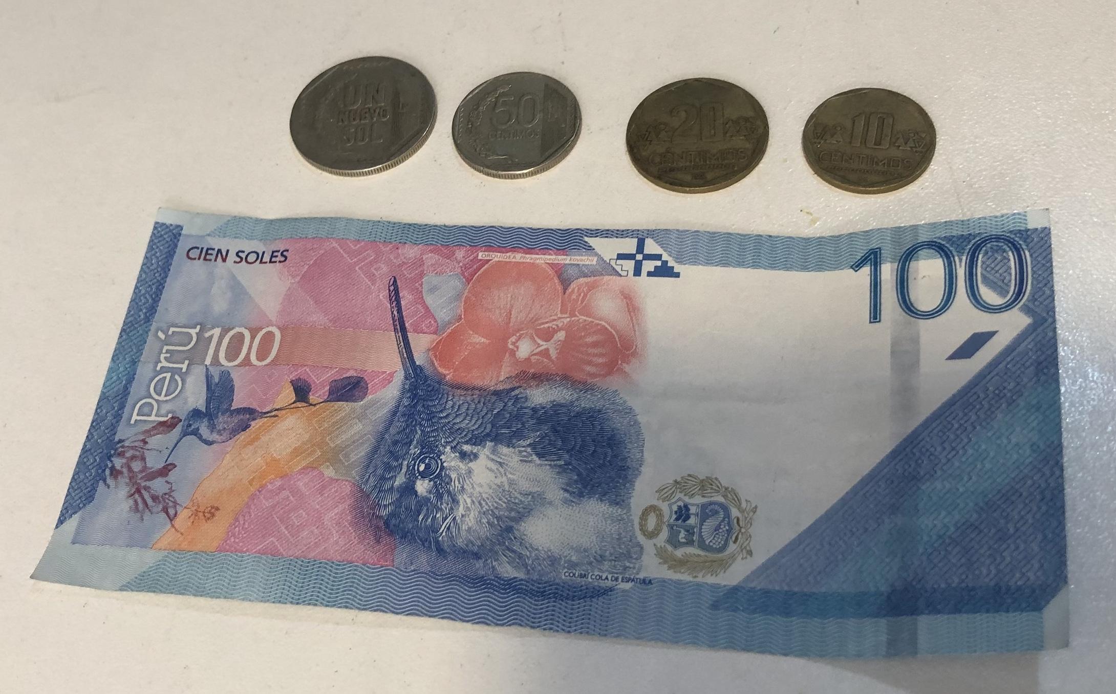 ¡Aquí se usan los soles! $1 USD es S/3.37 (soles) aproximadamente.