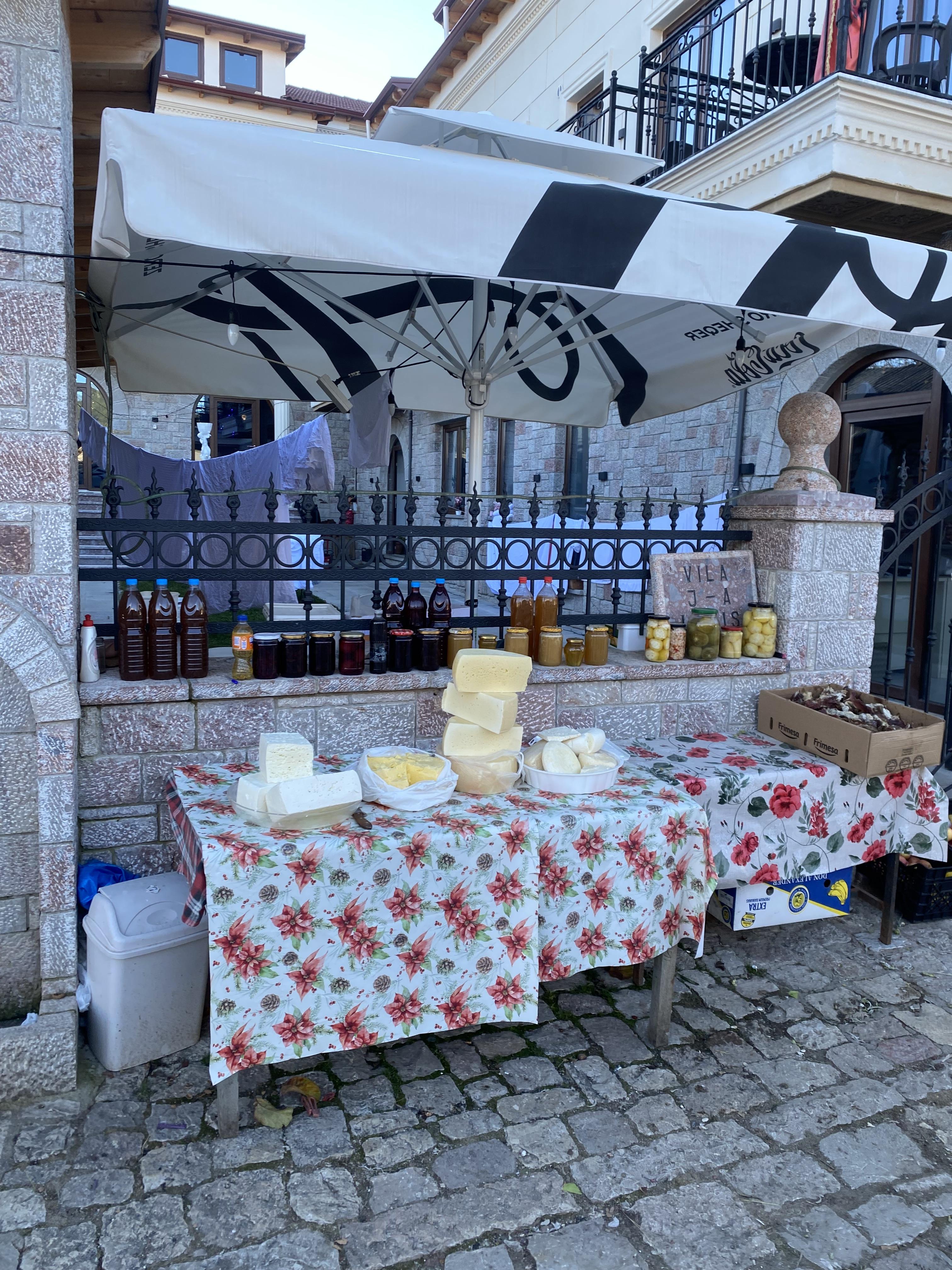Every week, I usually buy my groceries from local street-side markets to stock up on fresh produce. Items here are often fresher and locally grown. It is also much cheaper to buy from these local markets than from supermarkets. All the dishes in Albania are shaped by their local environment! Cities near the Mediterranean Sea eat so much seafood, while cities further away, like Korçë, rely on corn because it is a crop that stores easily and is reliable in the winter months. Also, Albanians tend to only eat food when they are in season. Although you can find a lot of produce like strawberries year round, many people don't eat them unless they are in season because that is when they are sourced locally. Albania's climate is subtropical, featuring hot summers, mild winters and long growing seasons, which are ideal conditions for agriculture. Because of that climate, Albania can grow most fruits and vegetables on their own, making the country largely self-sufficient when it comes to produce.