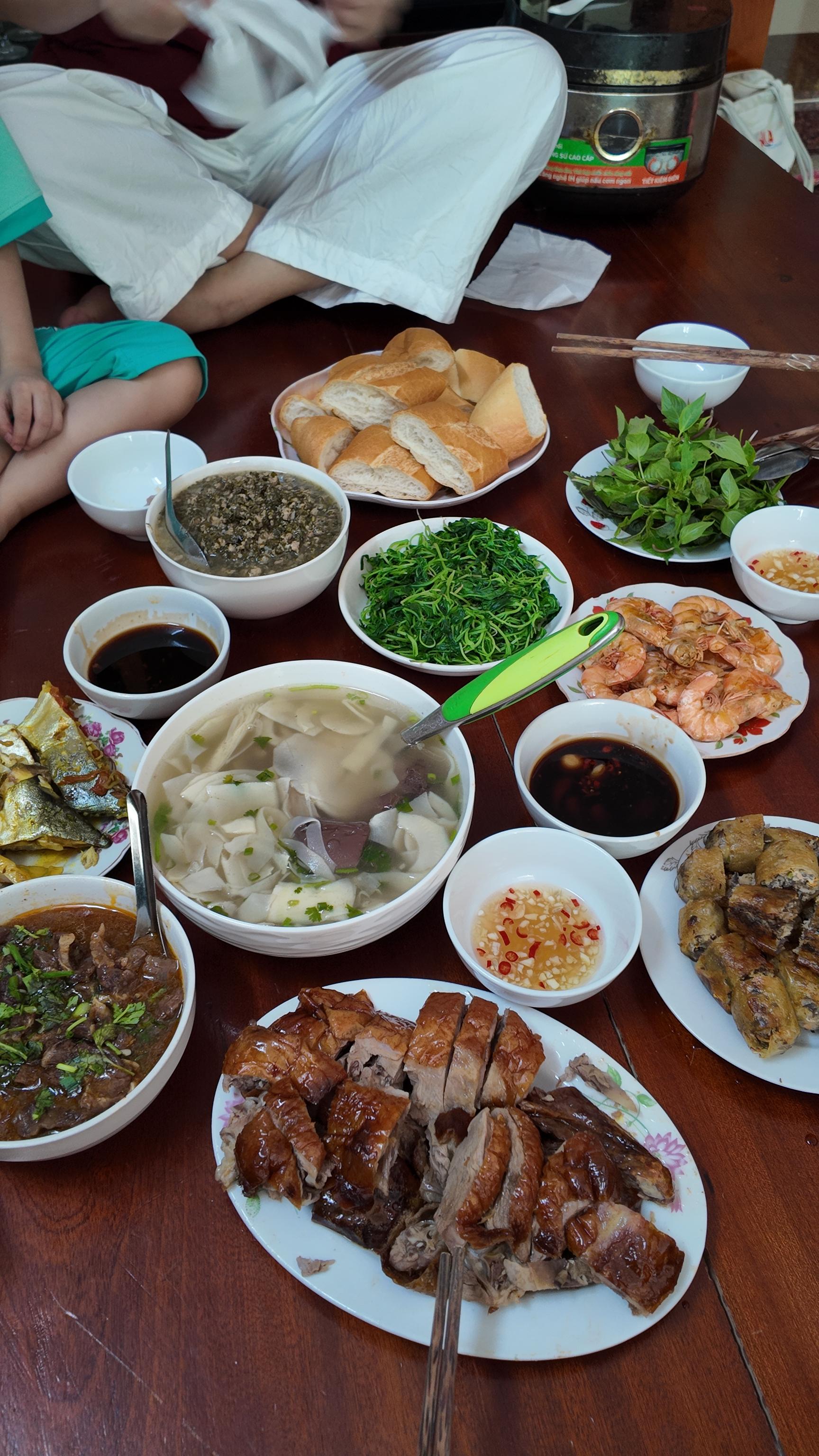 For breakfast, I eat fried rice, eggs, or a Vietnamese sandwich called bánh mì. For lunch, I eat rice with tasty foods like fish, shrimp and vegetable soup. For dinner, I eat rice with tofu, meatballs and cabbage. We usually have fruit for dessert.