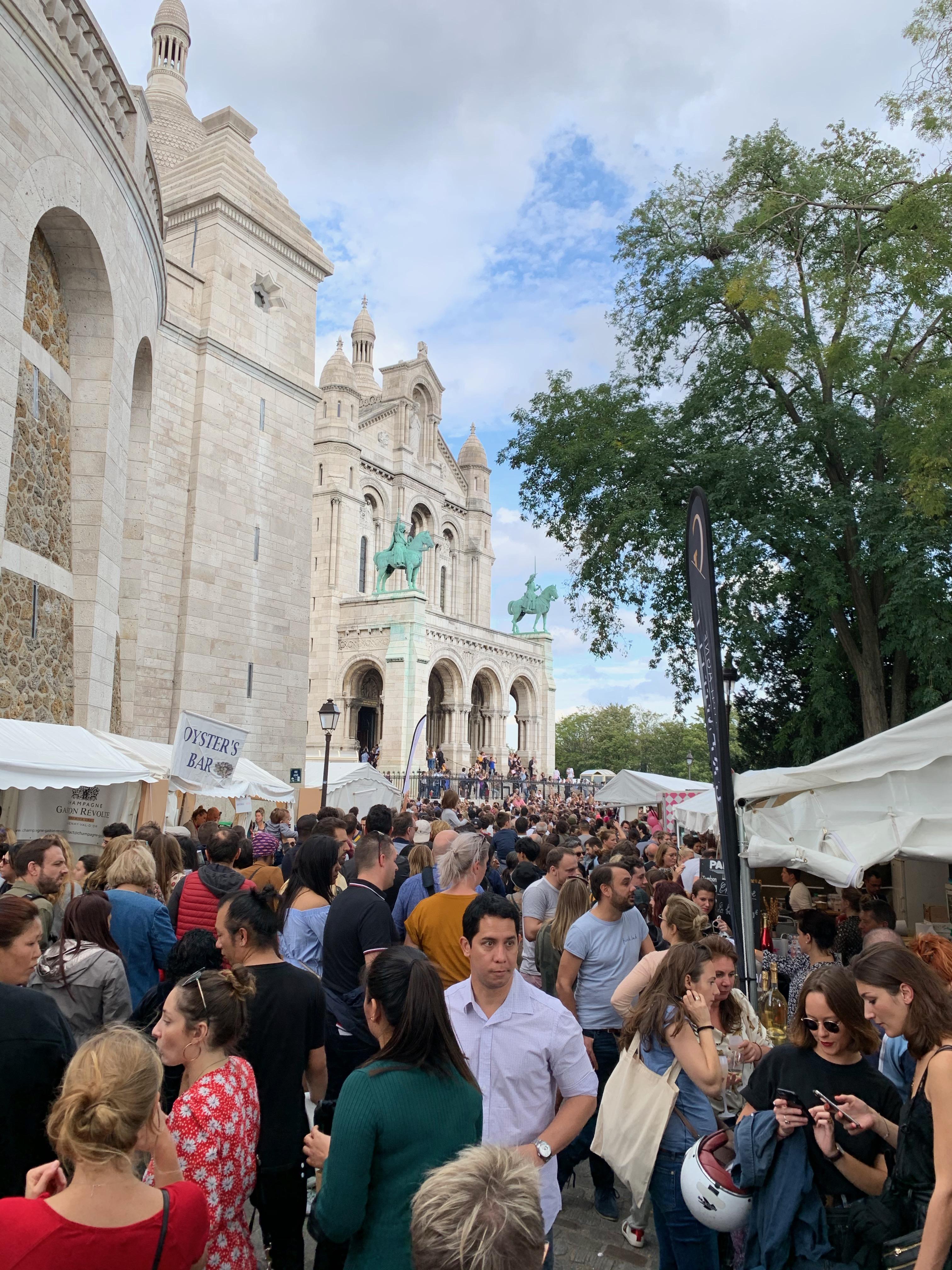 Normally, Montmartre and the Basilica of Sacré-Cœur have a lot of visitors. But during the Fête des Vendanges, there were so, so many people that it was sometimes difficult to get around! During the weekend of the Fête, there are over 300,000 people who visit to eat yummy food, try different wines and enjoy the celebration.