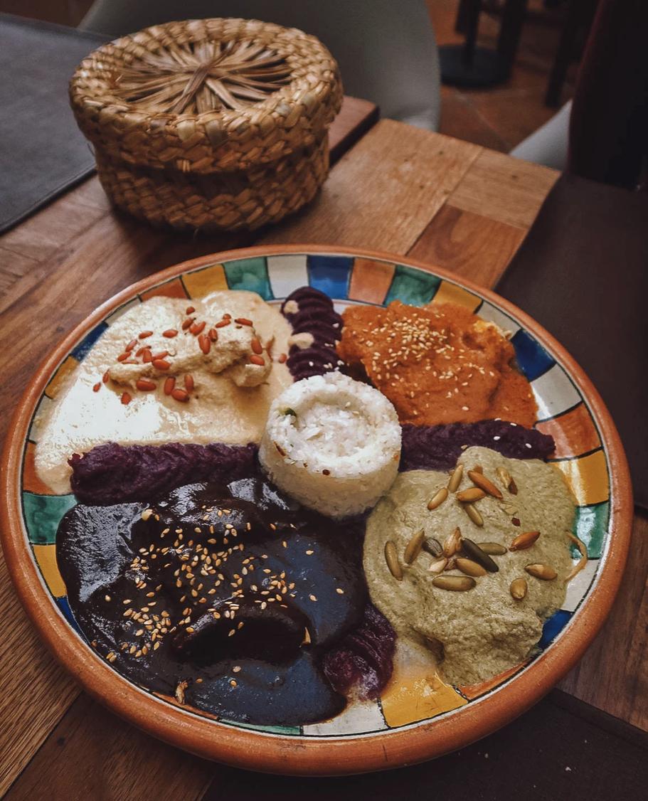 Another famous Mexican dish is mole (pronounced mole-ay). Mole is a flavorful meat stew, and there are many different varieties. You might be surprised to know that some mole sauces have chocolate in them! Dark chocolate is blended with lots of other ingredients like spicy chiles, onion, garlic, tomato, and more. This creates a very rich, flavorful sauce to cook chicken or pork in. The mole is served steaming hot - of course with lots of hot tortillas to dip in the sauce!