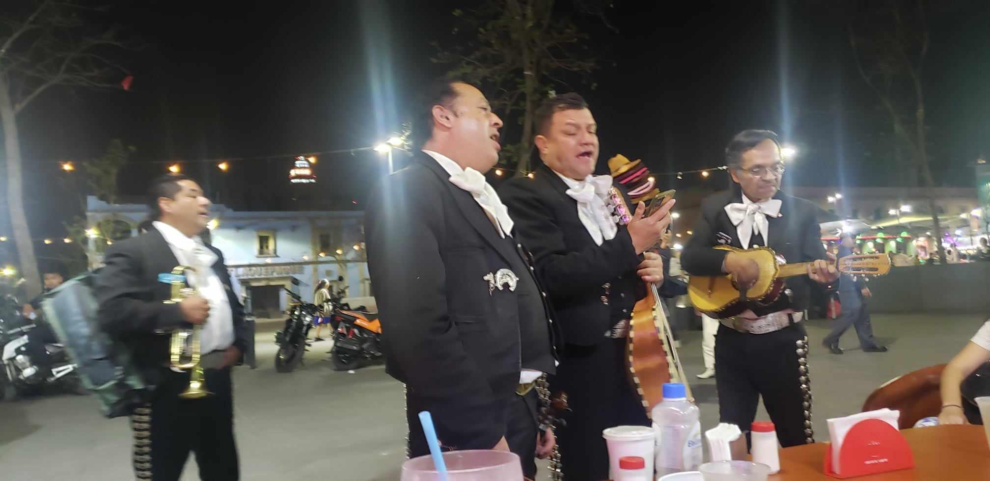Now that we have talked about classical music, let's talk a little about Mexican folk music. One of the most common kinds of Mexican music is the famous mariachi! Mariachi is a band usually made up of several brass instruments (usually trumpets), guitars, accordions, violins, and singers. It is traditional for mariachi bands to play at weddings or to be hired to play a serenata (serenade) outside the window of someone they love. In Mexico City, you can go to Plaza Garibaldi any night of the week to hear lots of mariachi bands playing. You can pay a band to play a song and then join a group of friends dancing to the music.