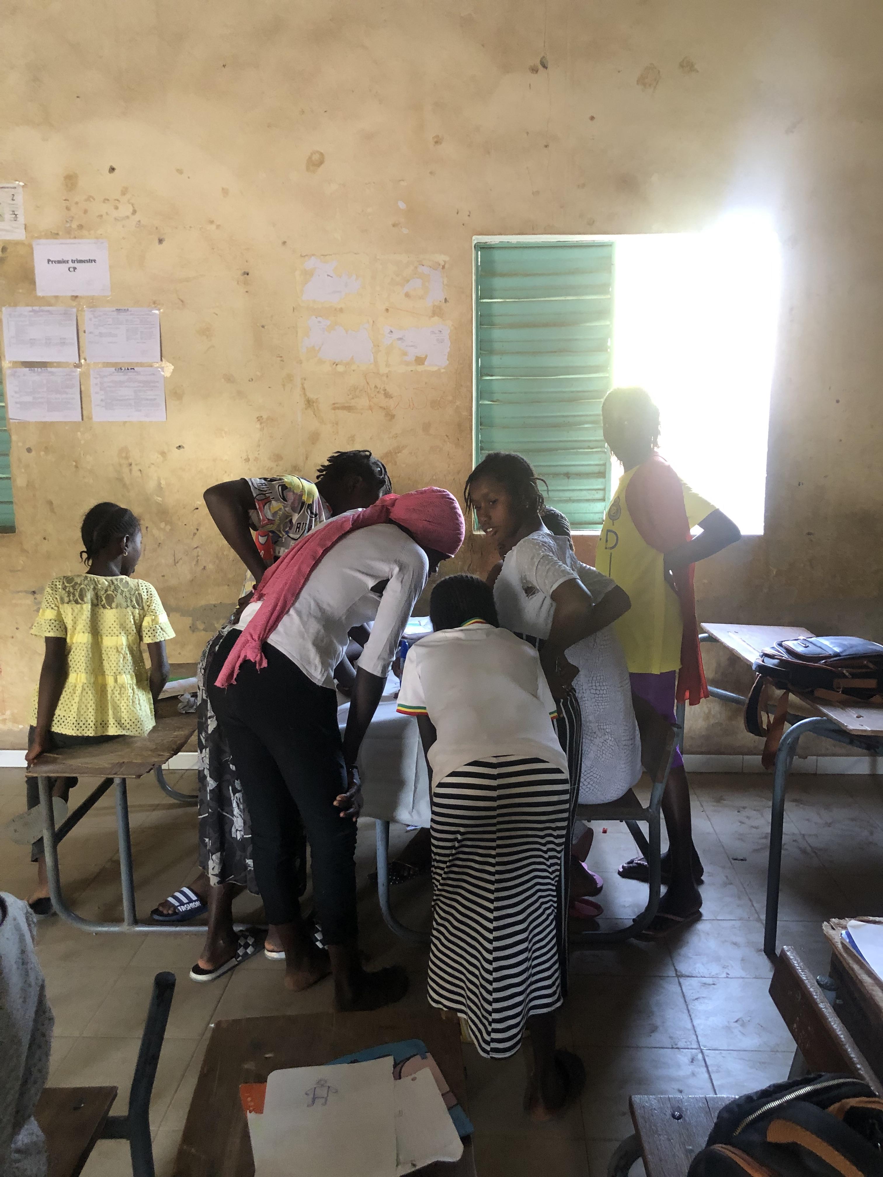 She likes to play patty-cake-like games with her friends. They sit in a circle and have songs in Wolof, Pulaar, and French that have motions that go with them.
