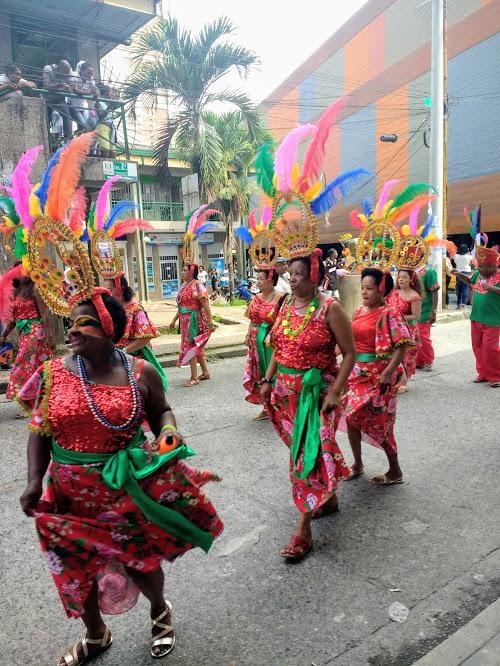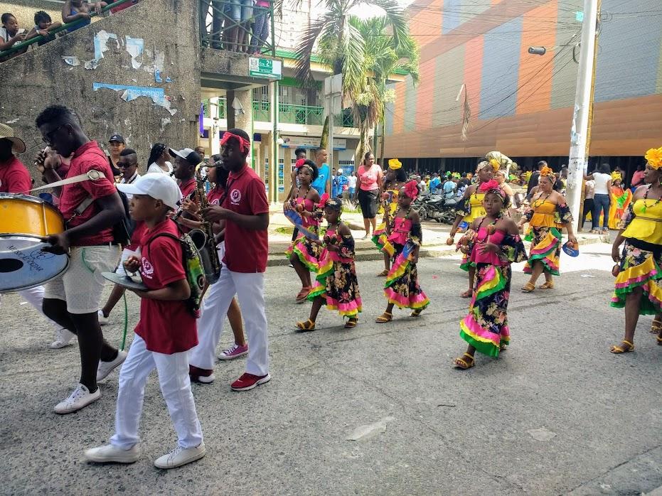 Once we made it to the end location for Saturday's parade, in a neighborhood called Pan de Yuca (yes, this neighborhood is named after Quibdó's traditional yuca bread!), we were greeted with an abundance of street food, plus live music and dance performances. The street food consisted mainly of grilled meats and fried potatoes. The music was a mix of Chirimia and Reggaeton, which is a modern style of Latin pop music. Professional dance groups wearing traditional costumes performed some beautiful dances for the large crowd of spectators.