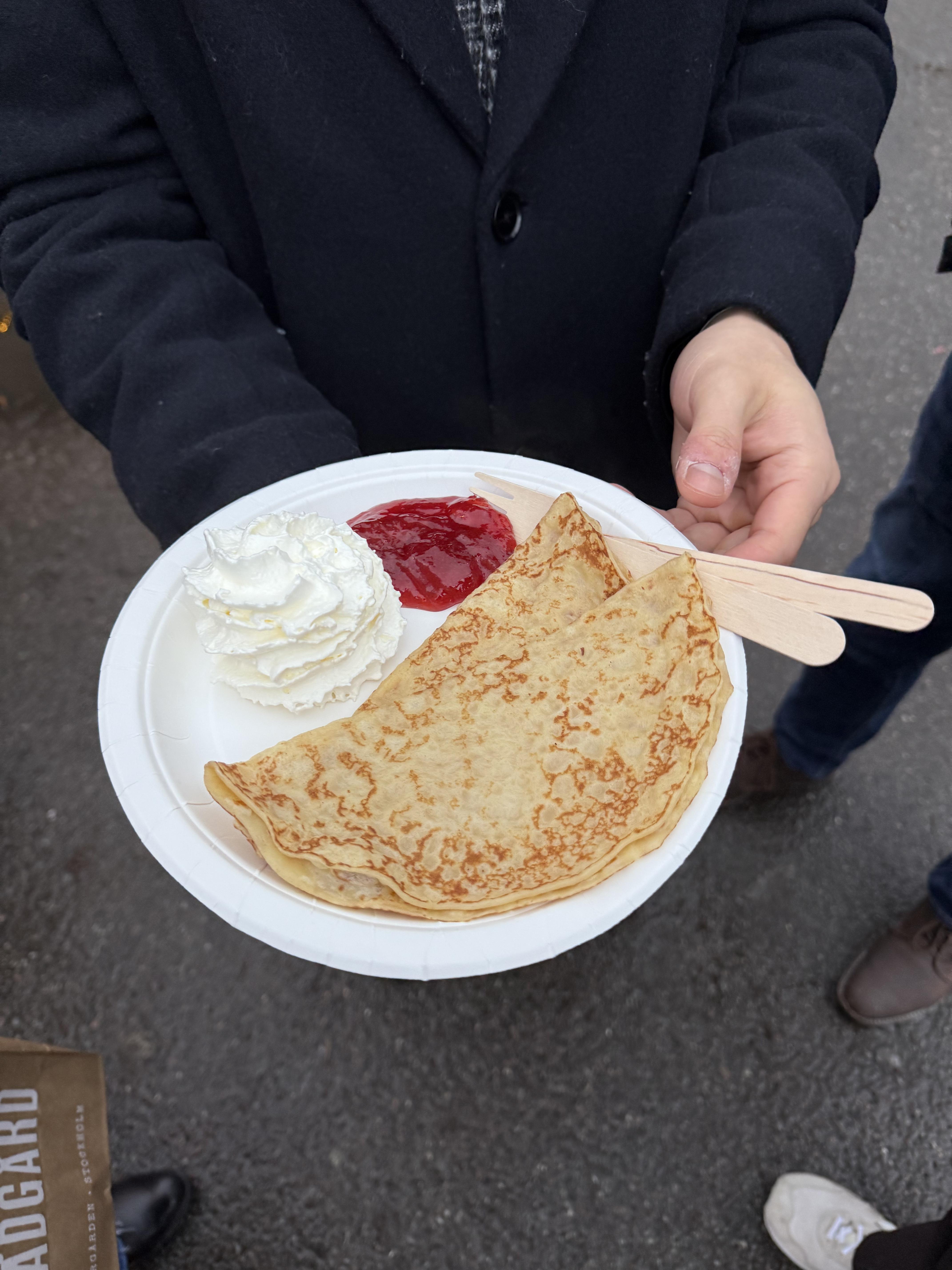 The best meal this week was my Thursday lunch. Thursday in Sweden is considered to be "Pancake Day". The pancakes here are thin and eggy, somewhat similar to a crepe. They are served with berry jam and whipped cream. They are a perfect mid-day treat!