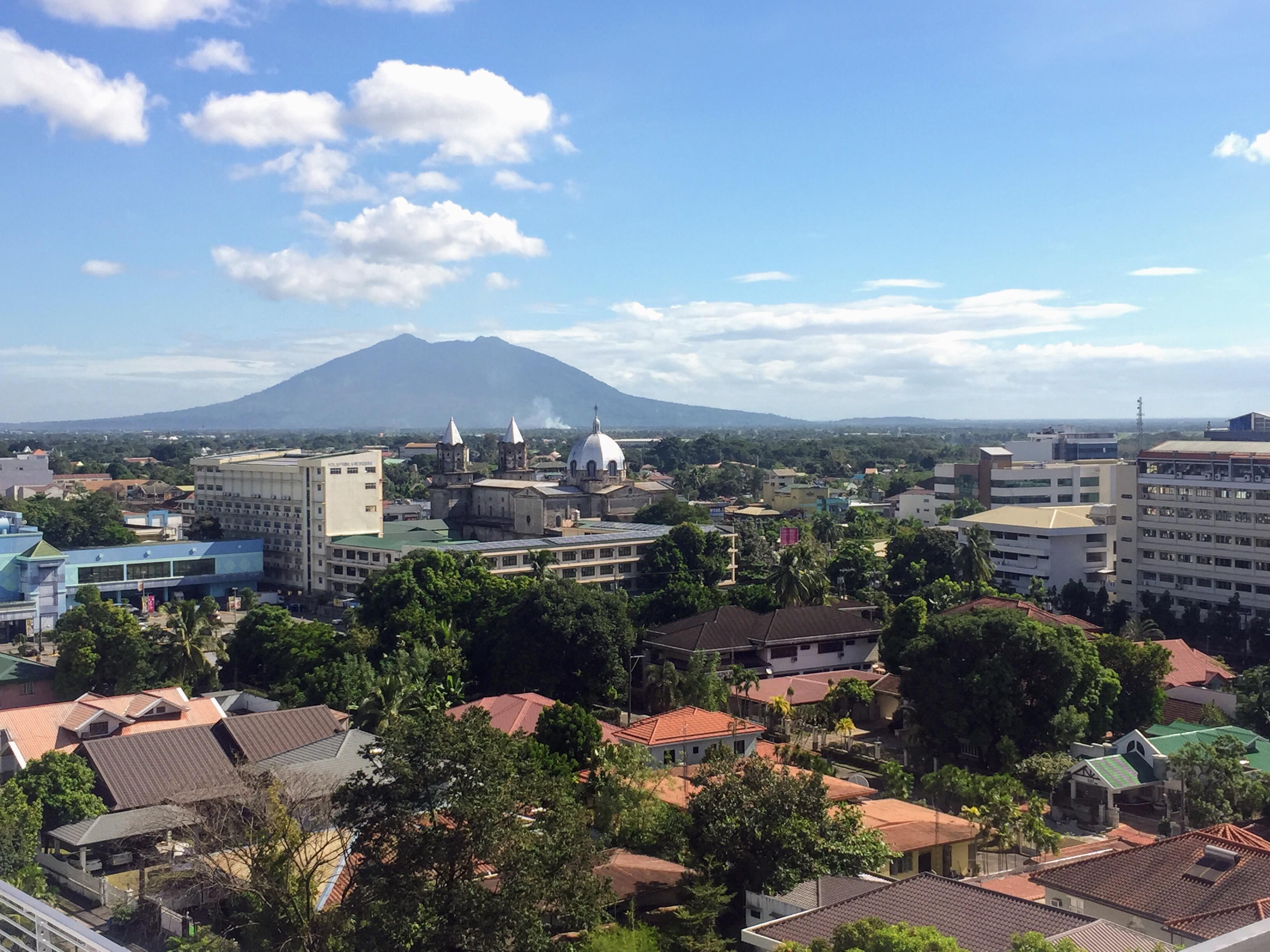 Angeles, the city where I'm living, is sandwiched between two large volcanoes, active Mount Pinatubo to the west and inactive Mount Arayat to the east. Both of these volcanoes are less than an hour's drive from here. A few months ago, there was an earthquake whose epicenter was about 20 km from where I live. I hid under a table on the fourth floor of a building during the tremors. Luckily, Filipinos build with earthquakes in mind: my building did not collapse!